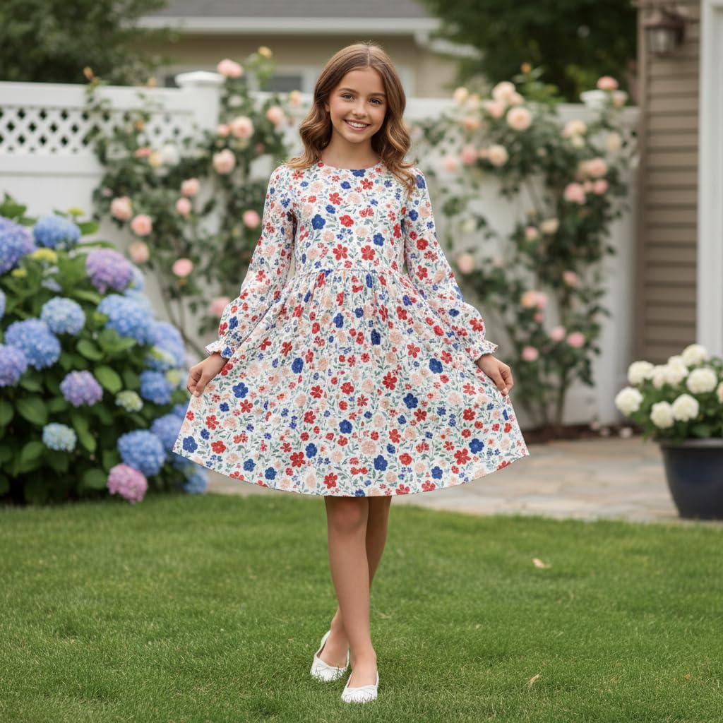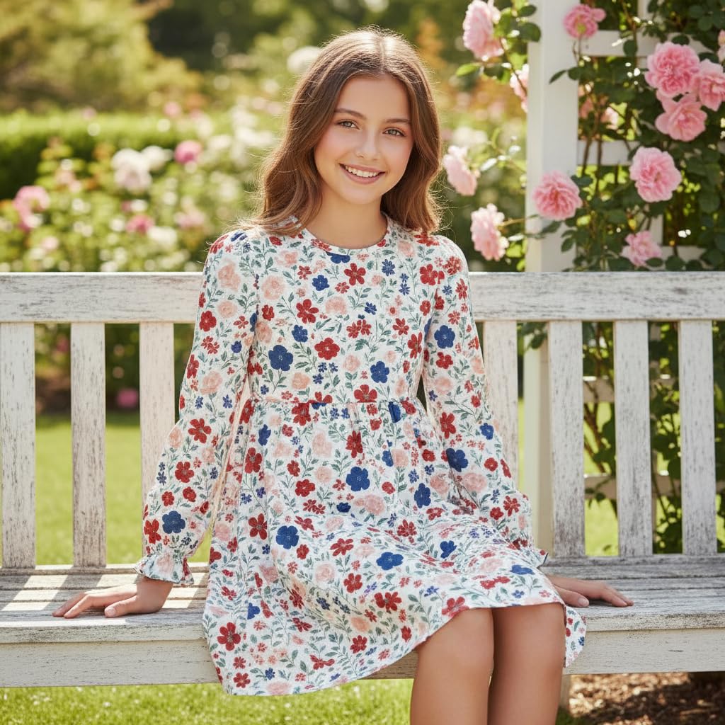 Stylish Features:Long sleeves with elastic cuffs add a cute touch, while the vibrant floral print gives it a trendy, boho vibe. Easy to slip on/off, and the flare skirt design makes your girl look fashionably sweet.