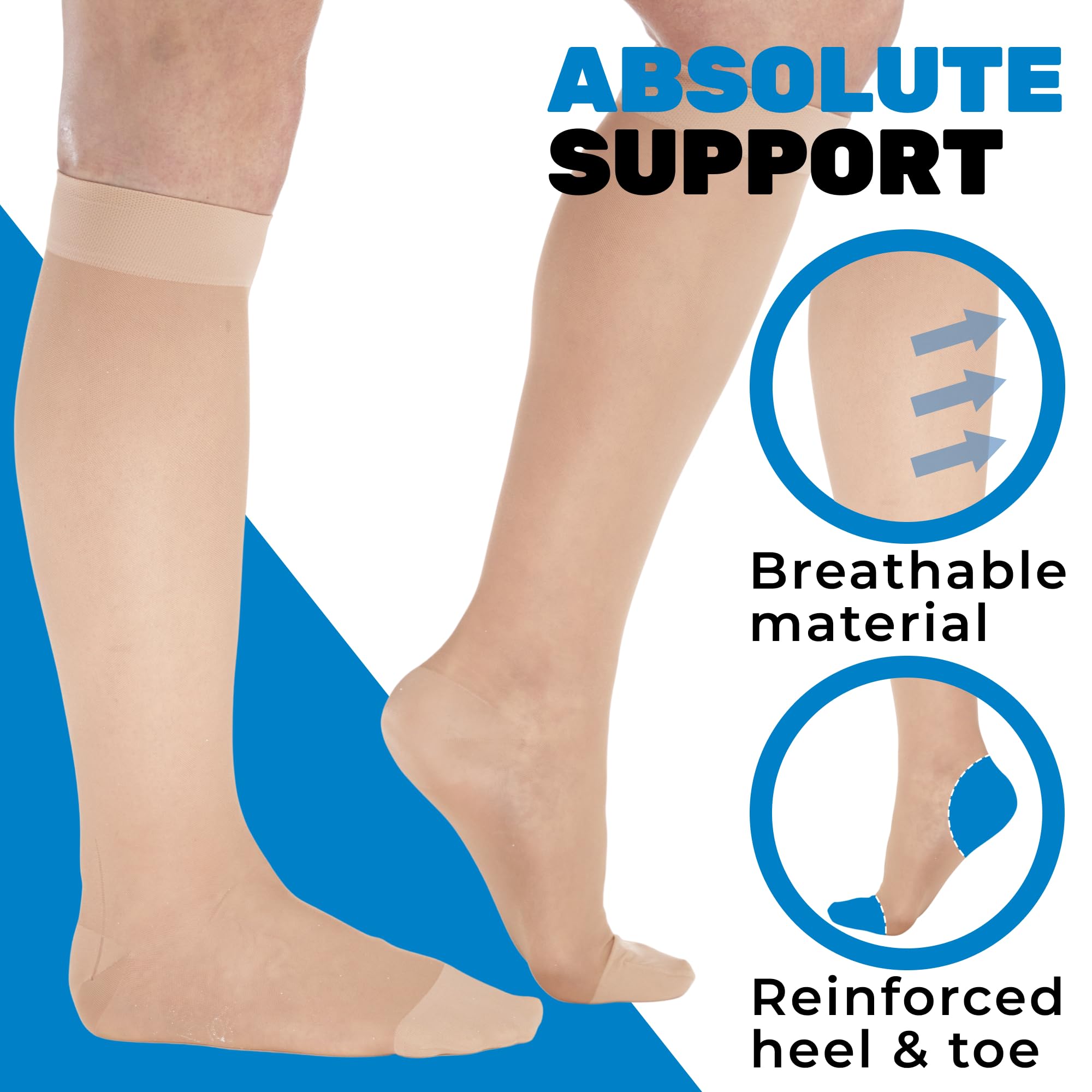 support sheer knee high firm women compression -mmhg extra comfort great looks stylish stockings swelling ankle severe varicose veins leg comfortable top band keep garment place reinforced toe heel semi-transparent spandex lycra material fashionable look feelp nylon spandex socks men mens womens nurses plus size circulation mmhg wide calf nurse fit maternity pregnant medical mens nursing pregnancy sports womens cute gear open graduated sox calves plantar fasciitis running neuropathy xxl big tall ladies energy light diabetic holiday foot postpartum crew sock aid large achilles tendon best petite surgery long travel relief grade shin splints socks stocking flying cut diabetics bariatric xl athletic