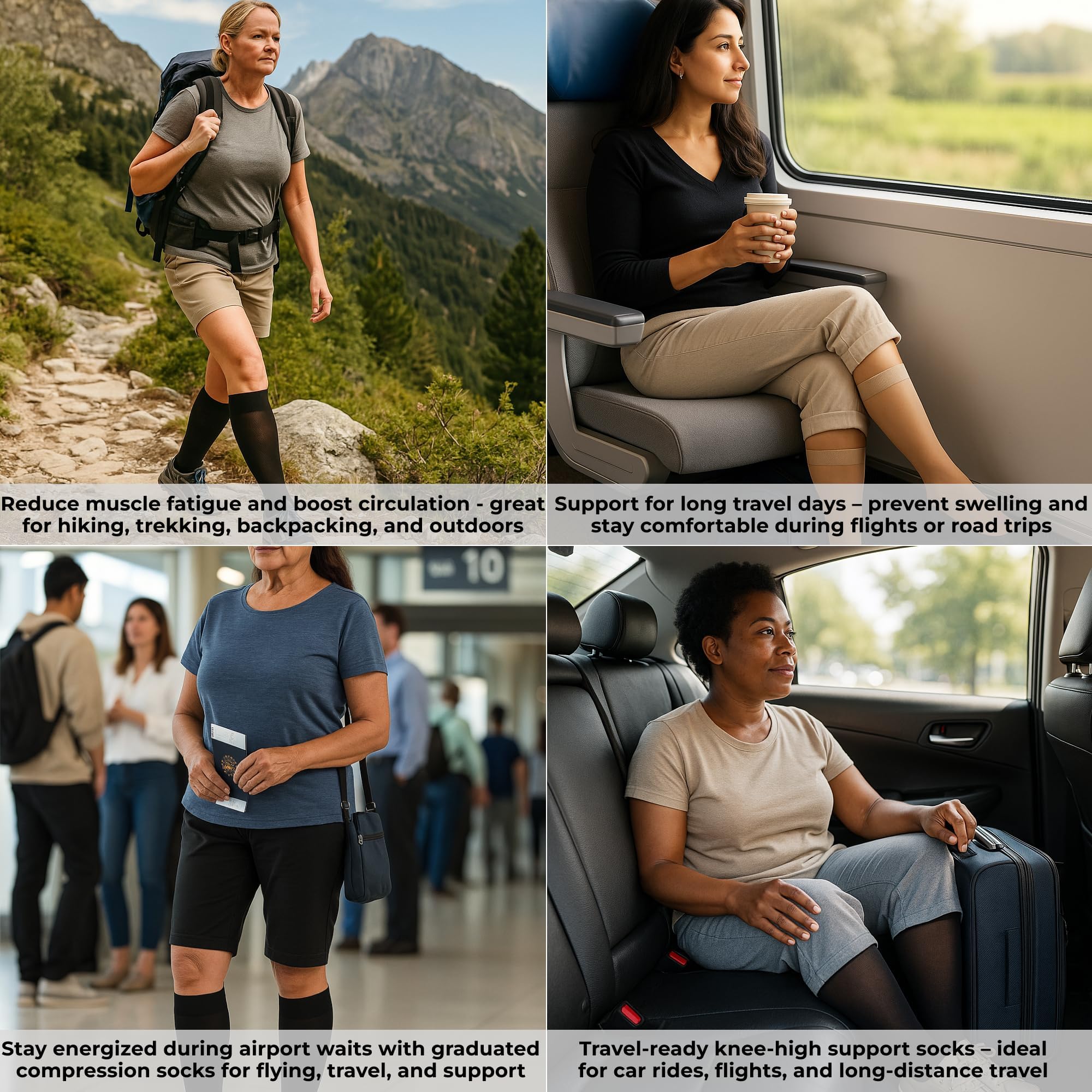 GRADUATED COMPRESSION - Offers 20-30 mmHg support to alleviate swelling and manage varicose veins, ideal for everyday wear.