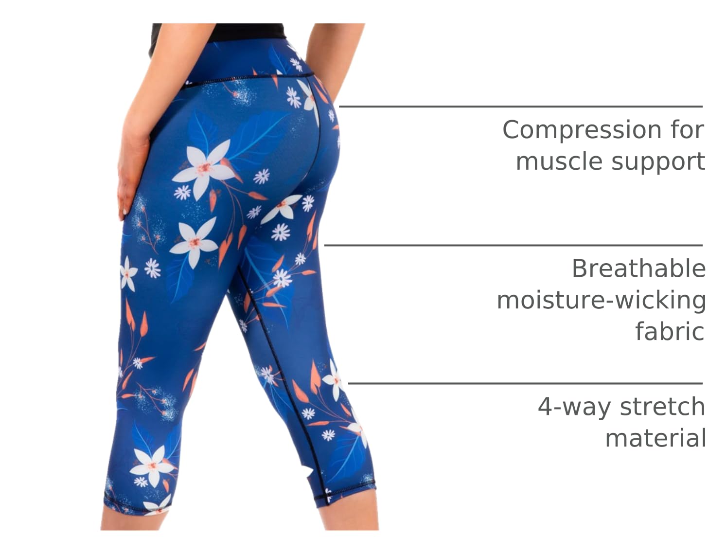 Breathable & Sweat-Wicking Fabric: Stay cool and comfortable during workouts with these high waist capri yoga pants made from moisture-wicking fabric. Their 4-way stretch and chafe-resistant design ensure these womenβs capri workout pants offer maximum mobility, allowing for unrestricted movement during any activity.