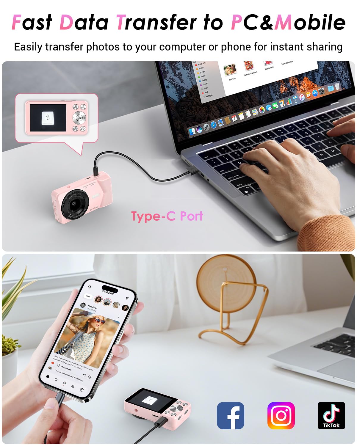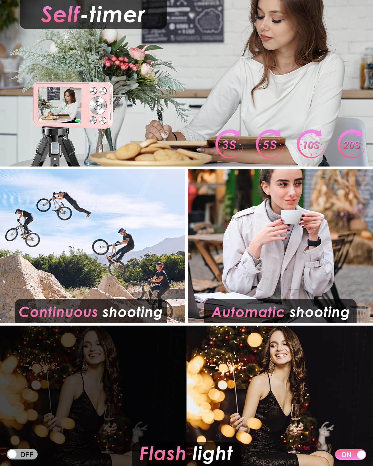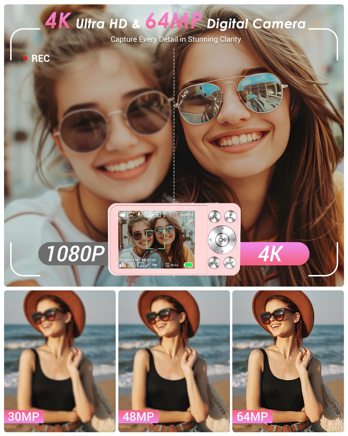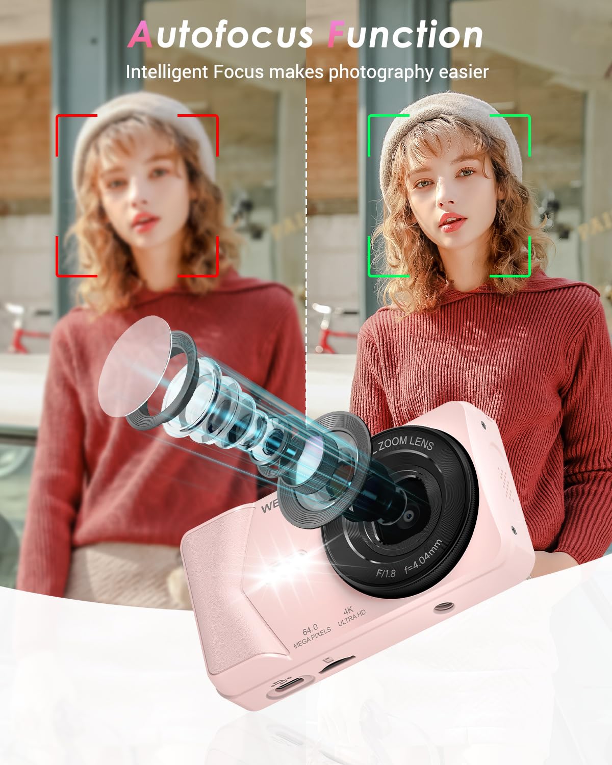 4K 64MP Autofocus Digital Camera: Say goodbye to blurry, grainy photos. Our upgraded CMOS sensor delivers crystal-clear 64MP pictures and smooth 4K video. Fast autofocus ensures your subjects are sharp and in focus - just point, shoot, and capture even the finest details