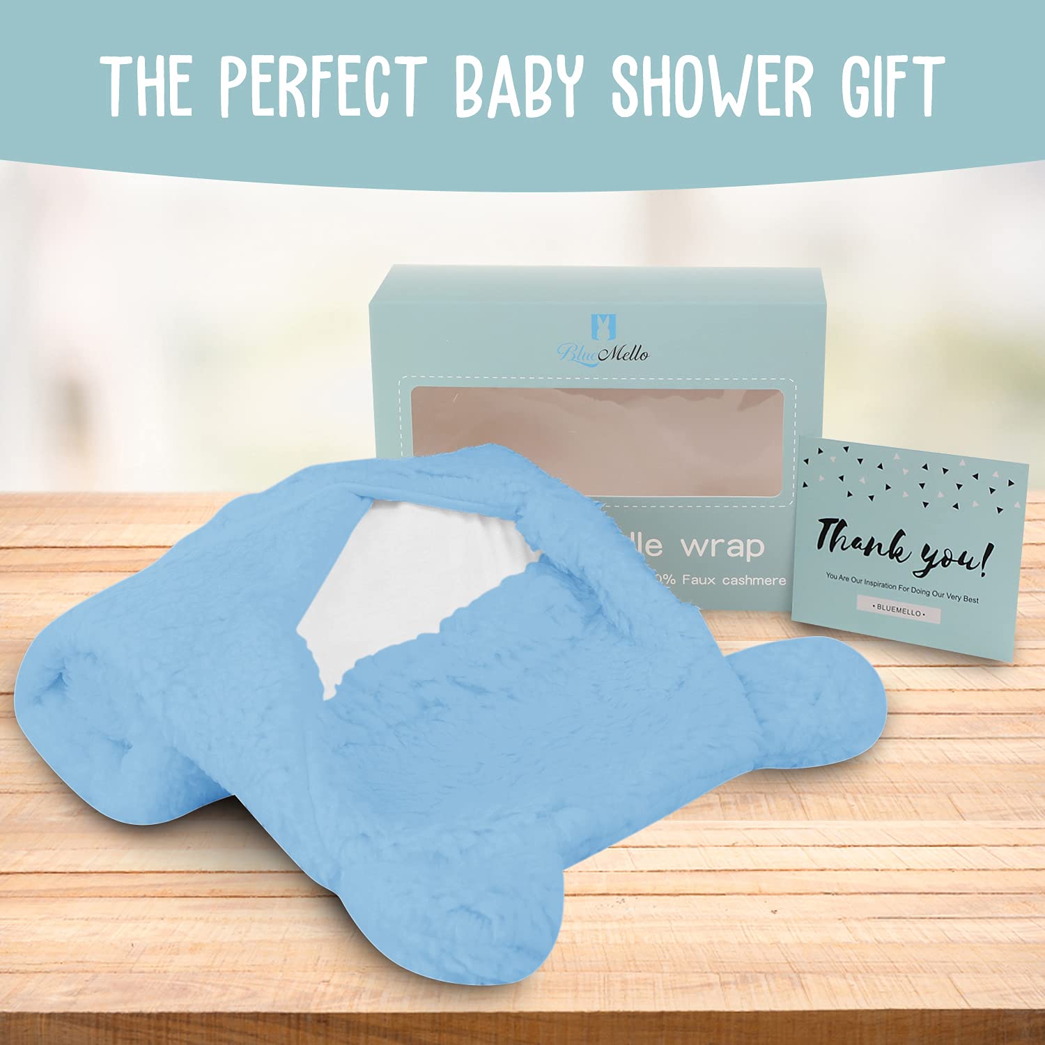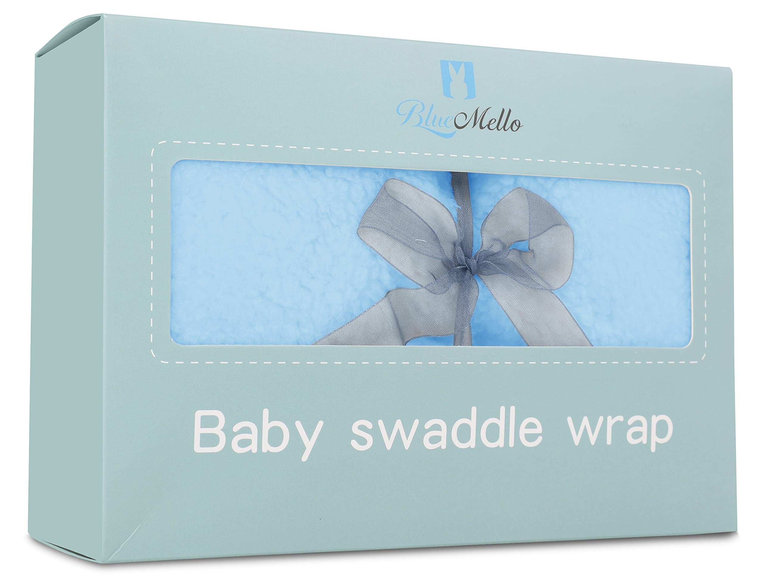 BlueMello Baby Swaddle Blanket | Ultra-Soft Plush Essential for Infants 0-6 Months | Receiving Swaddling Wrap Blue | Ideal Newborn Registry and Toddler Boy Accessories | Perfect Baby Girl Shower Gift
