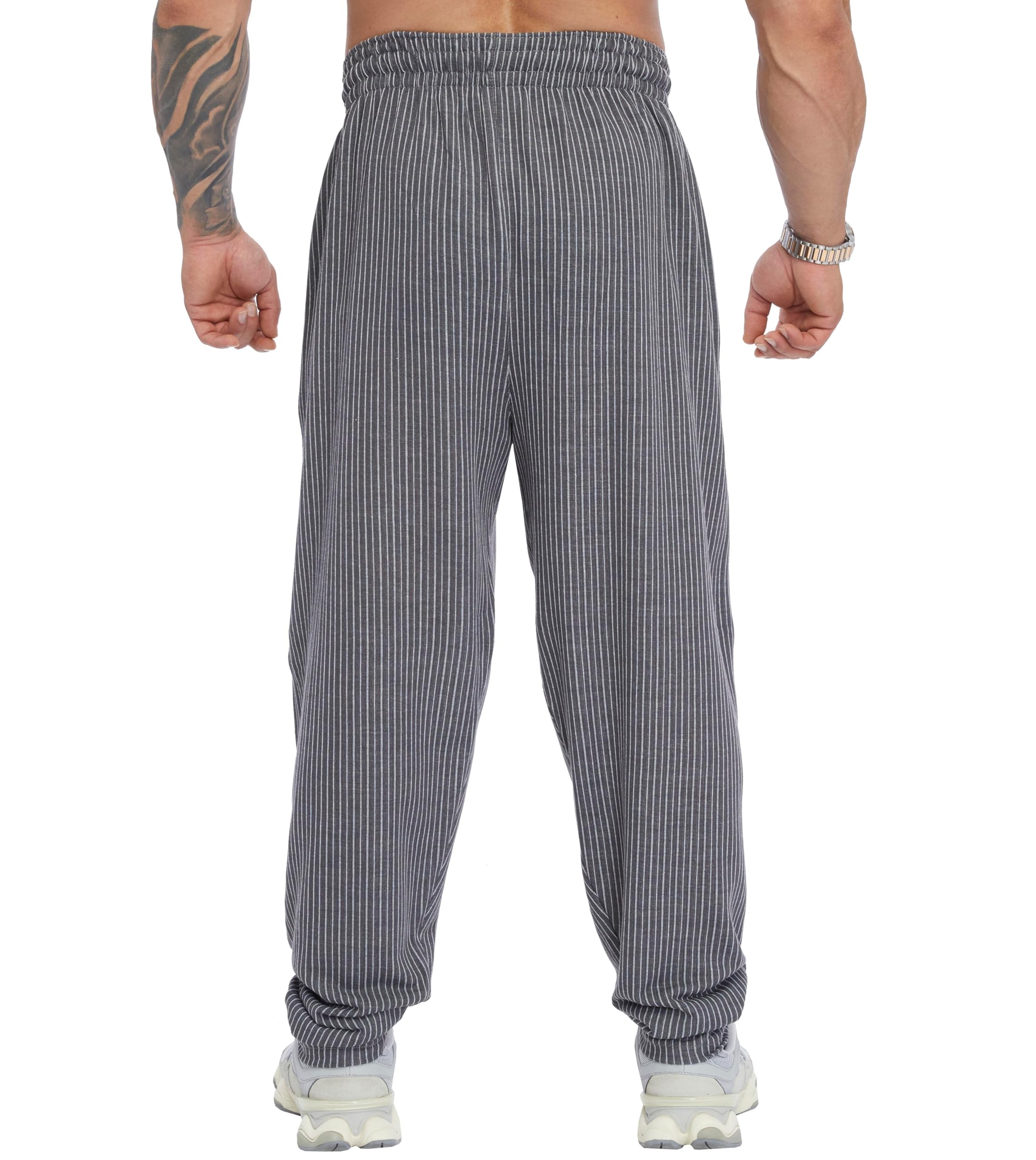 Cut Style & Form ➢ These sweatpants are produced with a wider cut than normal sweatpants. It is produced for large and muscular body types with its wide leg and hip cut. Wide hip and leg cuts taper downwards. The trousers that look draped in thin body types will be regular in muscular or large body types.