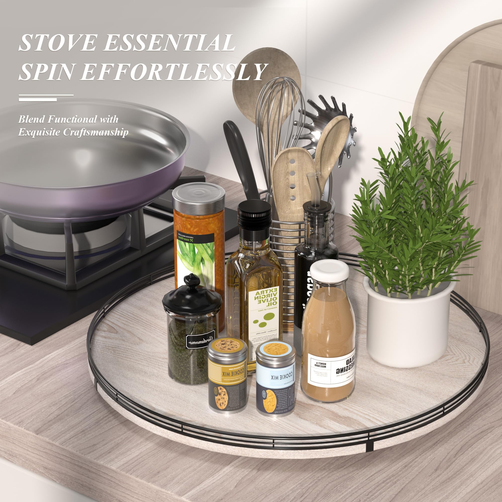 360 RATATING & MAXIMIZE SPACE: The base is made of solid wood and the spinning mechanism is made of steel ball bearings, which are well-built and allow for 360° smoothly spin. Making it super easy to access items at the back of your cabinet without having to remove everything in front. You can use it to store spices, condiments, and even small jars, and it keeps everything neatly in place.