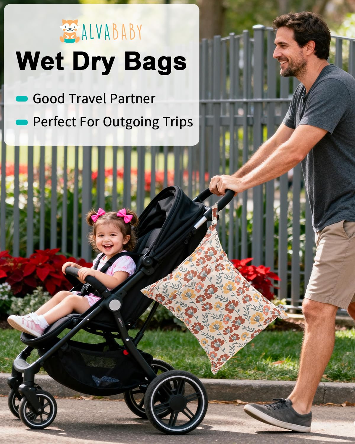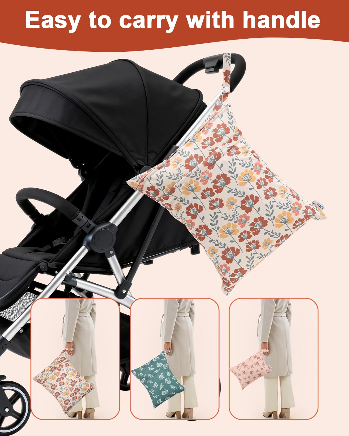 Fashion , Reusable&Waterproof , High quality : A trim and attractive design. ALVABABY wet/dry bag are made from waterproof 100% polyester, put dirty cloth diapers in a wet bag. Comes with handle for easy carrying or attaching to your diaper bag or stroller.
