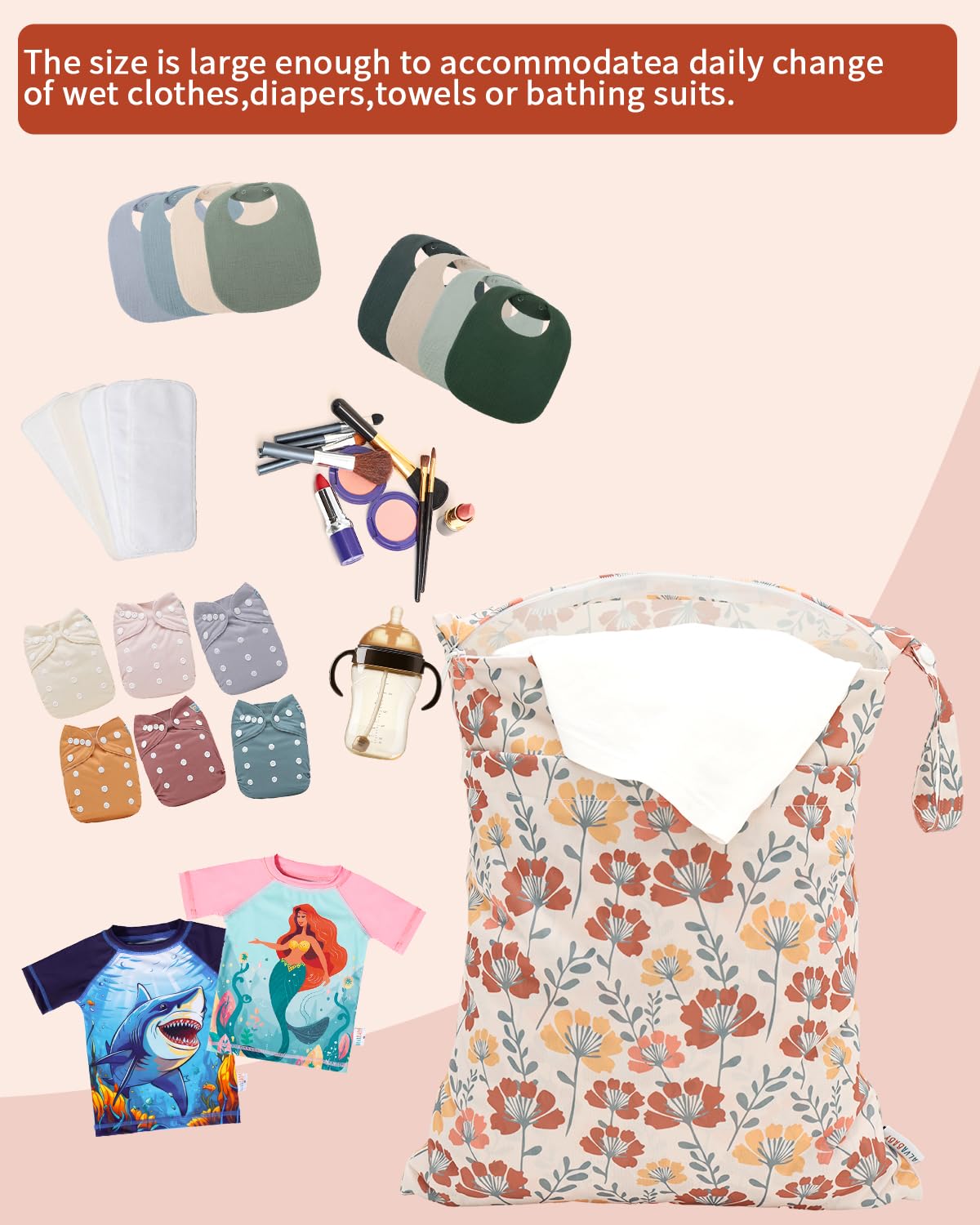 Multi-functional Bags : A truly wonderful bag that allows you to carry your wet and dry items in the same bag. Carry all your items in one bag while keeping your dry items dry and your wet or soiled items separate. Truly an all in one bag! They can be used as diaper wet dry bags,travel bags,storage bags,cosmetic bags,handbags,wash bag,organizer bags.