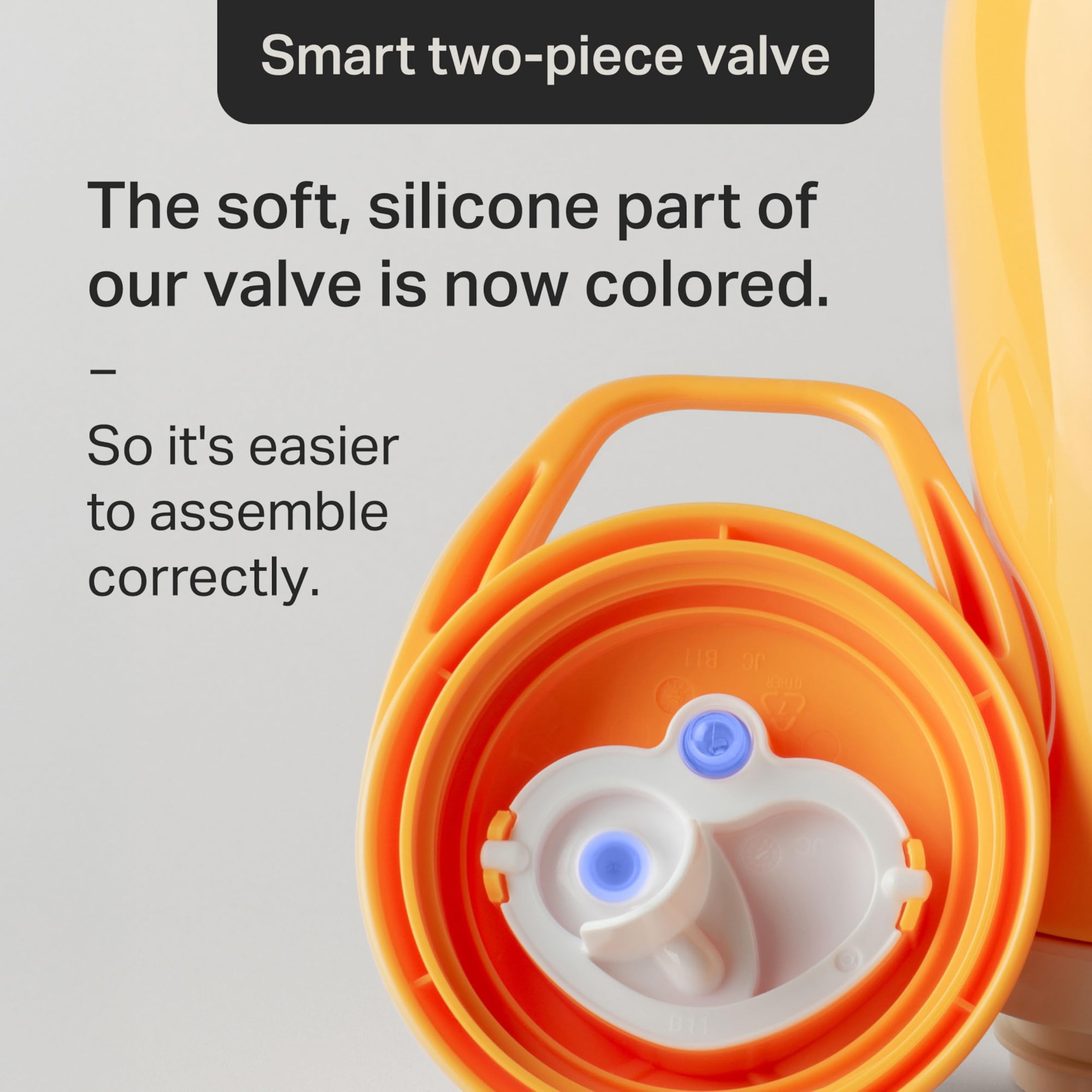 Toddler Water Bottle with Spill-Proof Valve: Tommee Tippee Sporty Spout toddler sippy cup comes with a two-piece, detachable valve to help stop spills, that you can also remove for free-flow drinking