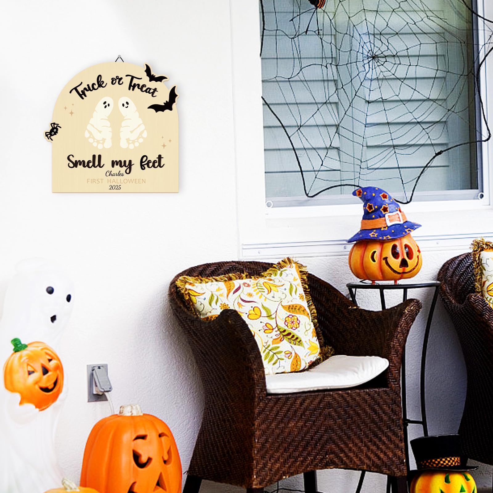 High-quality Craftsmanship: Our baby Halloween footprint signs are made of high-quality wood, with beautiful patterns and durability. They are equipped with hooks and brackets, and can be hung or displayed on the table