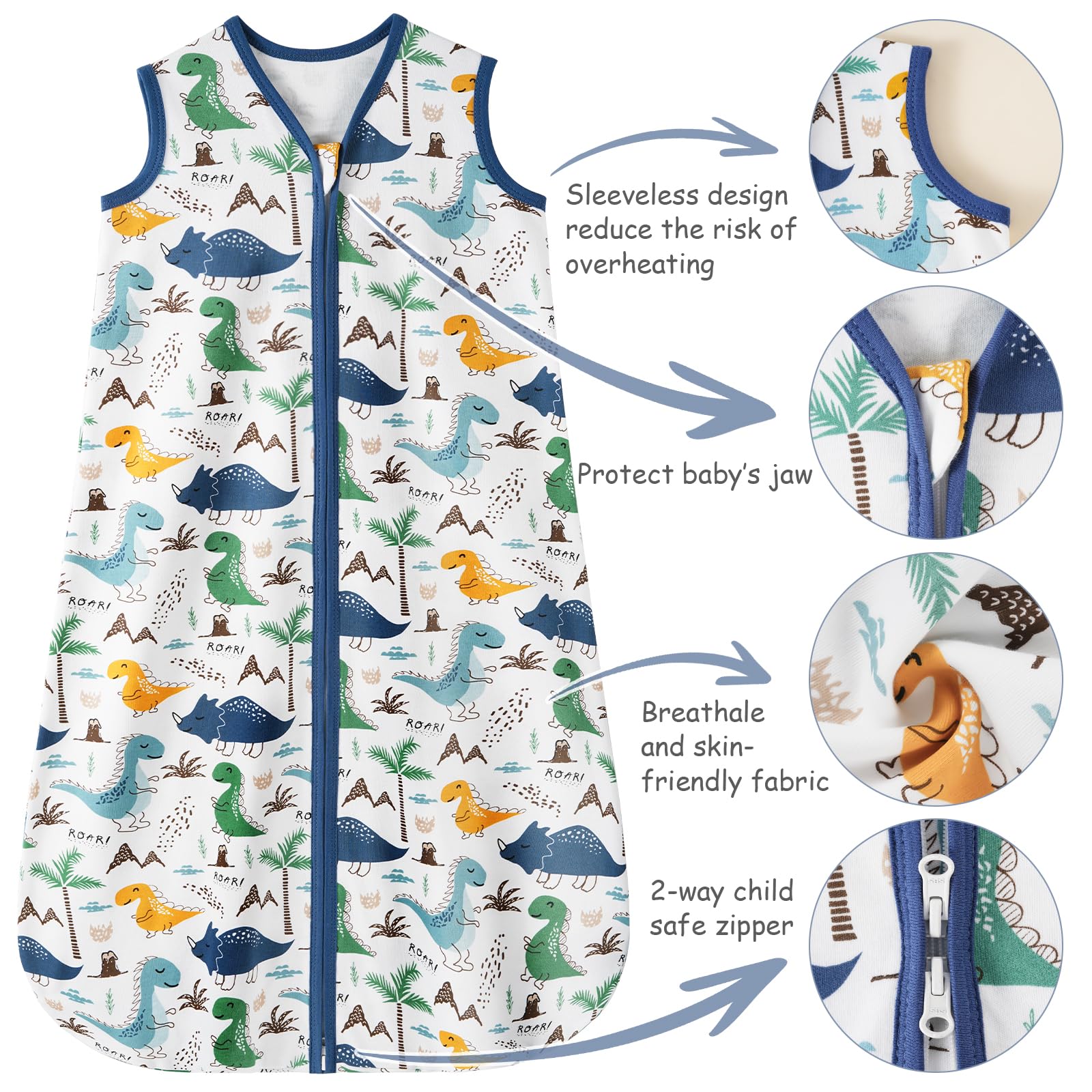 Lightweight 0.5 TOG : 0.5 Tog baby sleeping bag is suitable for moderate temperatures of 75 to 80°F, which is an ideal choice for spring, summer, autumn or naps in air-conditioned rooms, helping to maintain a stable body temperature. The sleeveless design keeps your baby warm and comfortable while reducing the risk of overheating.
