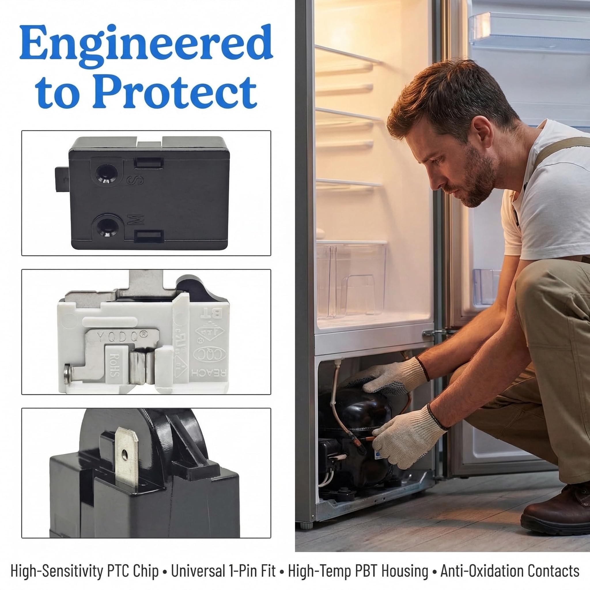 Package Included: You will get 1x 4.7 Ohm 1 pin PTC start relay and 1x 1/2HP Refrigerator overload protector
