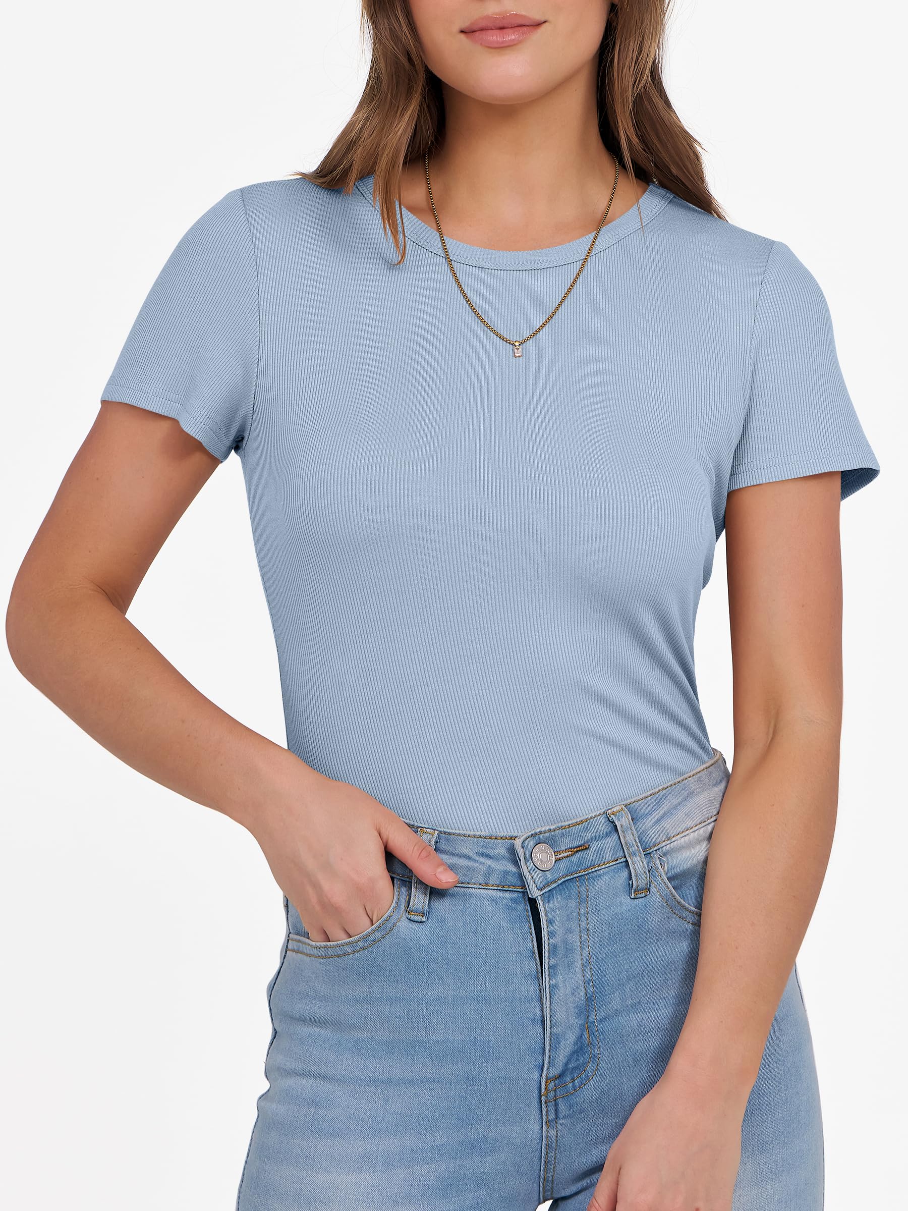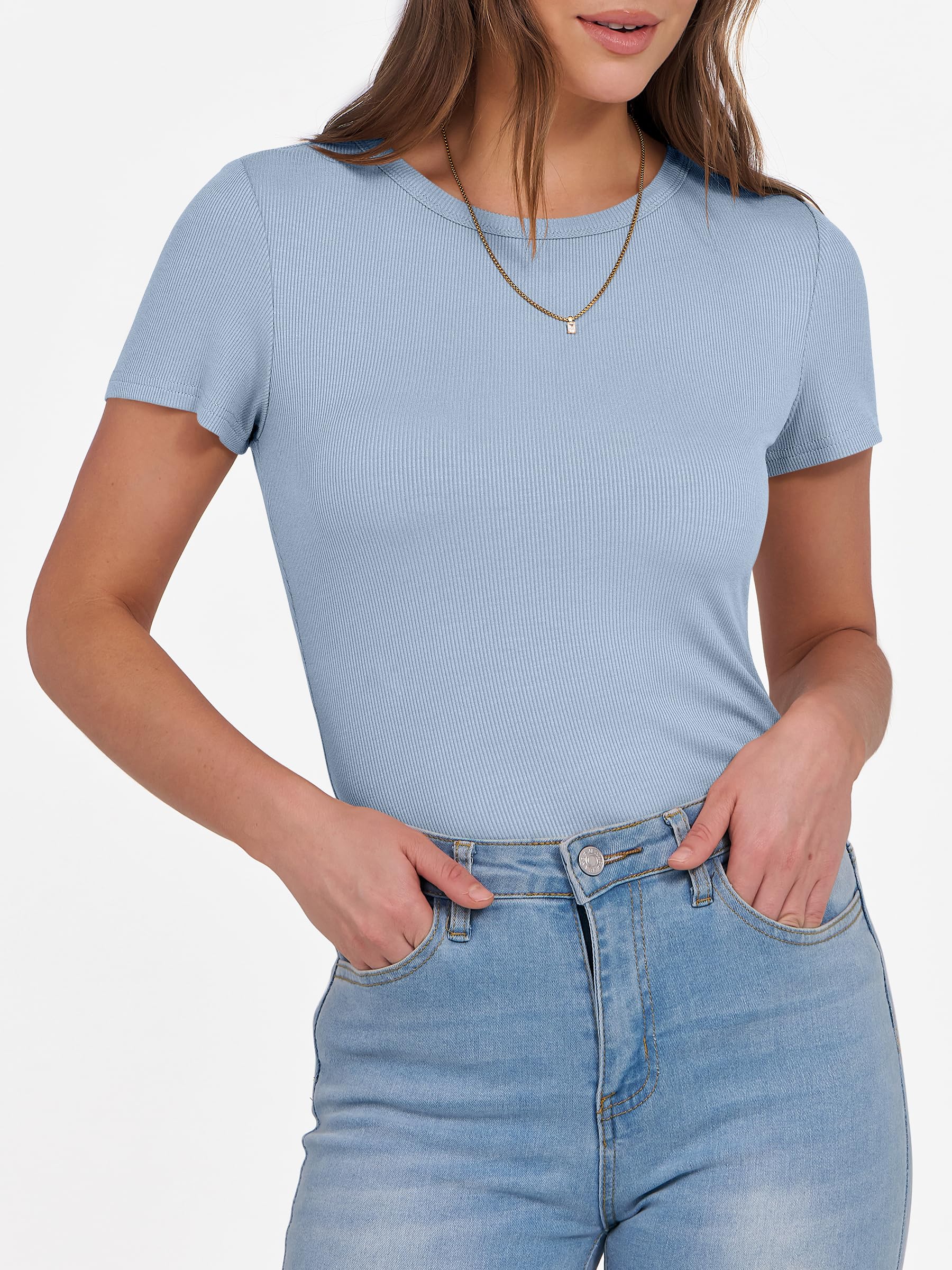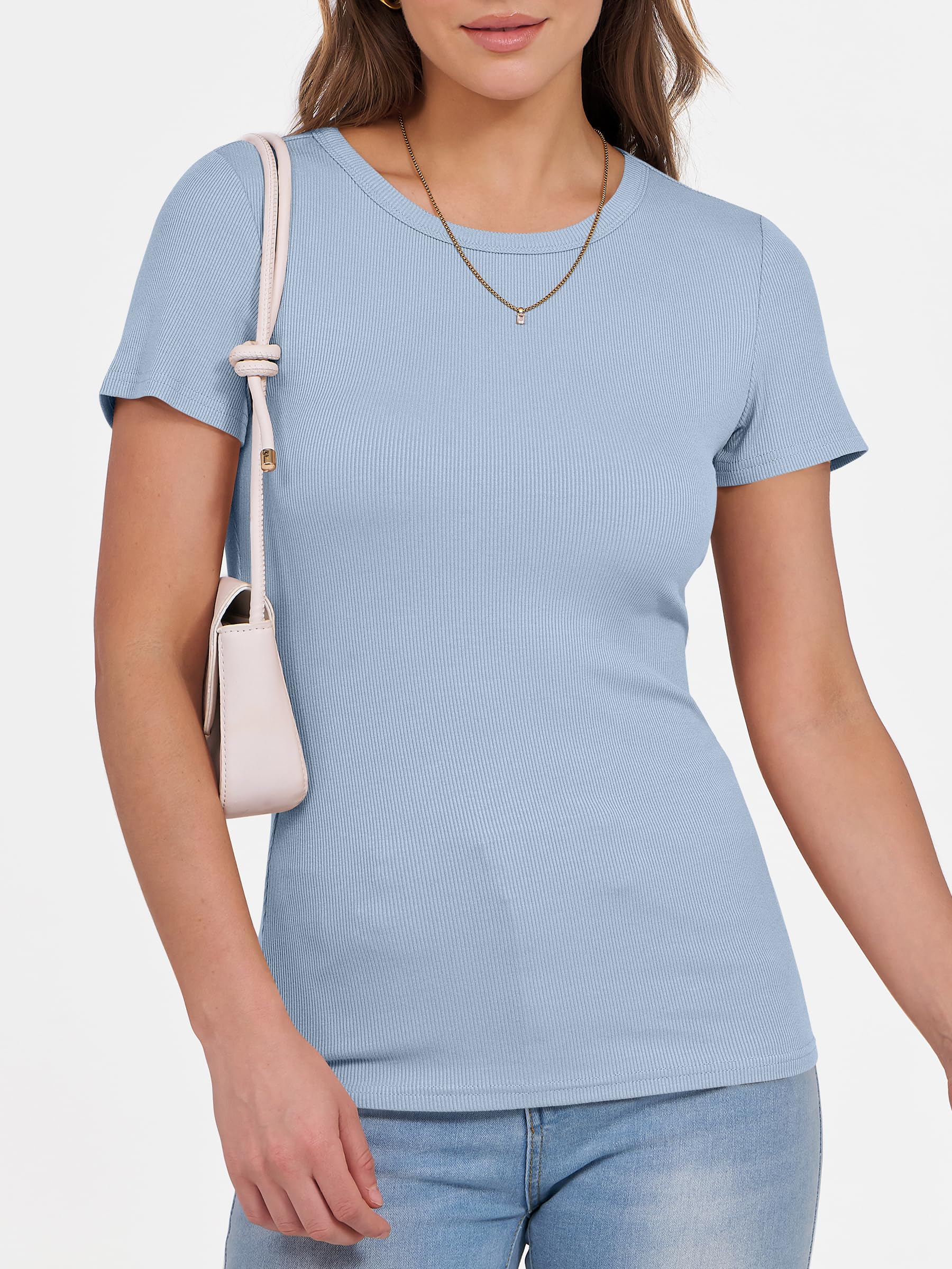 Features - Get summer-ready with our comfy and soft knitted fabric, perfect for all occasions. Our short sleeve crew neck design is versatile - wear it to school, the gym, the beach, or casual daily wear. The slim fit highlights your perfect figure, making you feel confident and stylish wherever you go. Comfortable, lightweight, and oh-so-flattering, our basic summer slim tee is an essential addition to your wardrobe.