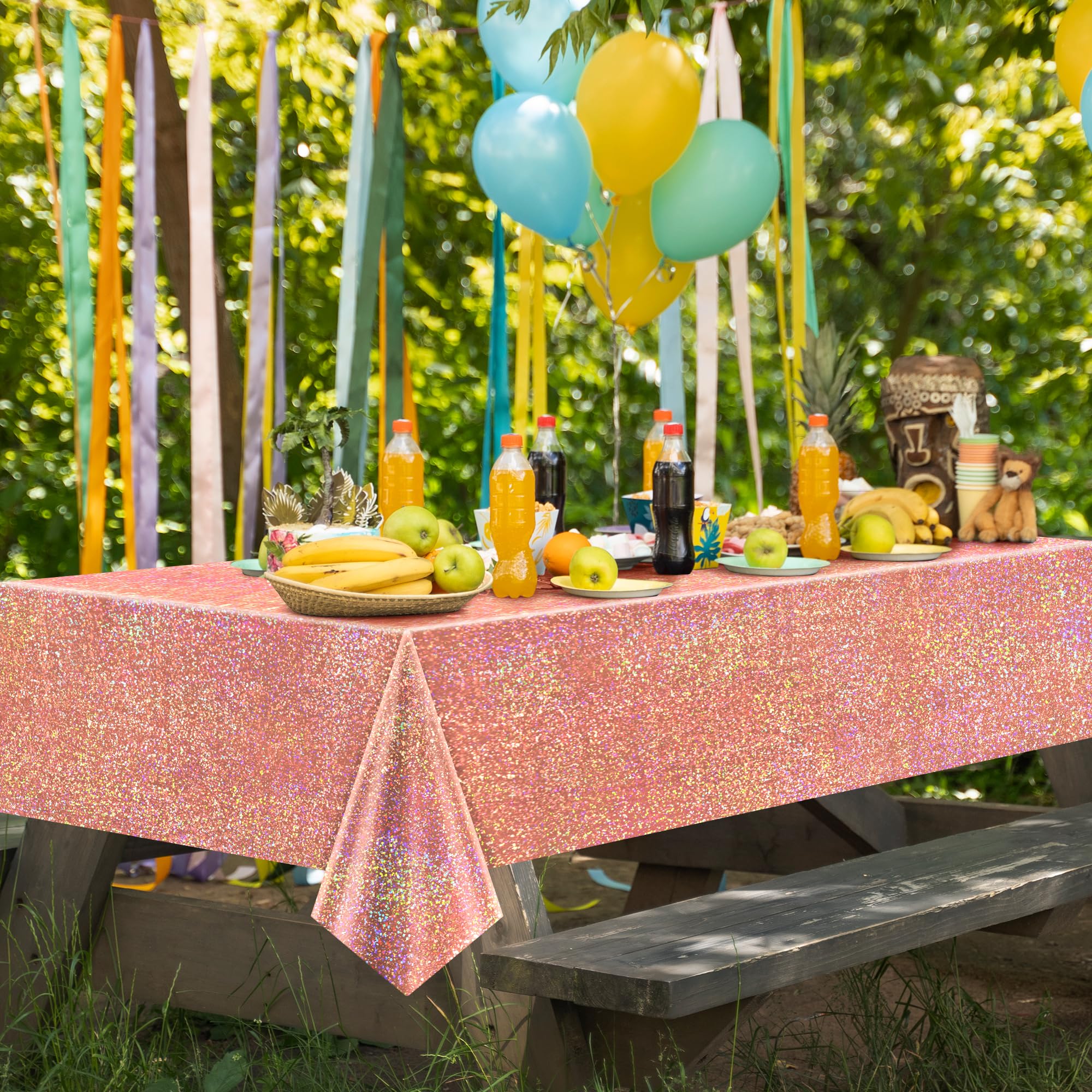 Fine Workmanship: The laser tablecloths are made of high-quality PE plastic, which is lightweight, reliable, and safe. The color stays vibrant and true. Enough for both indoor and outdoor use, use the plastic table cover to keep your tables stain-free from spilled milk, juice, or soda, and preventunwanted scratches from objects like crayons, markers, glue, glassware, plates, and cutlery.