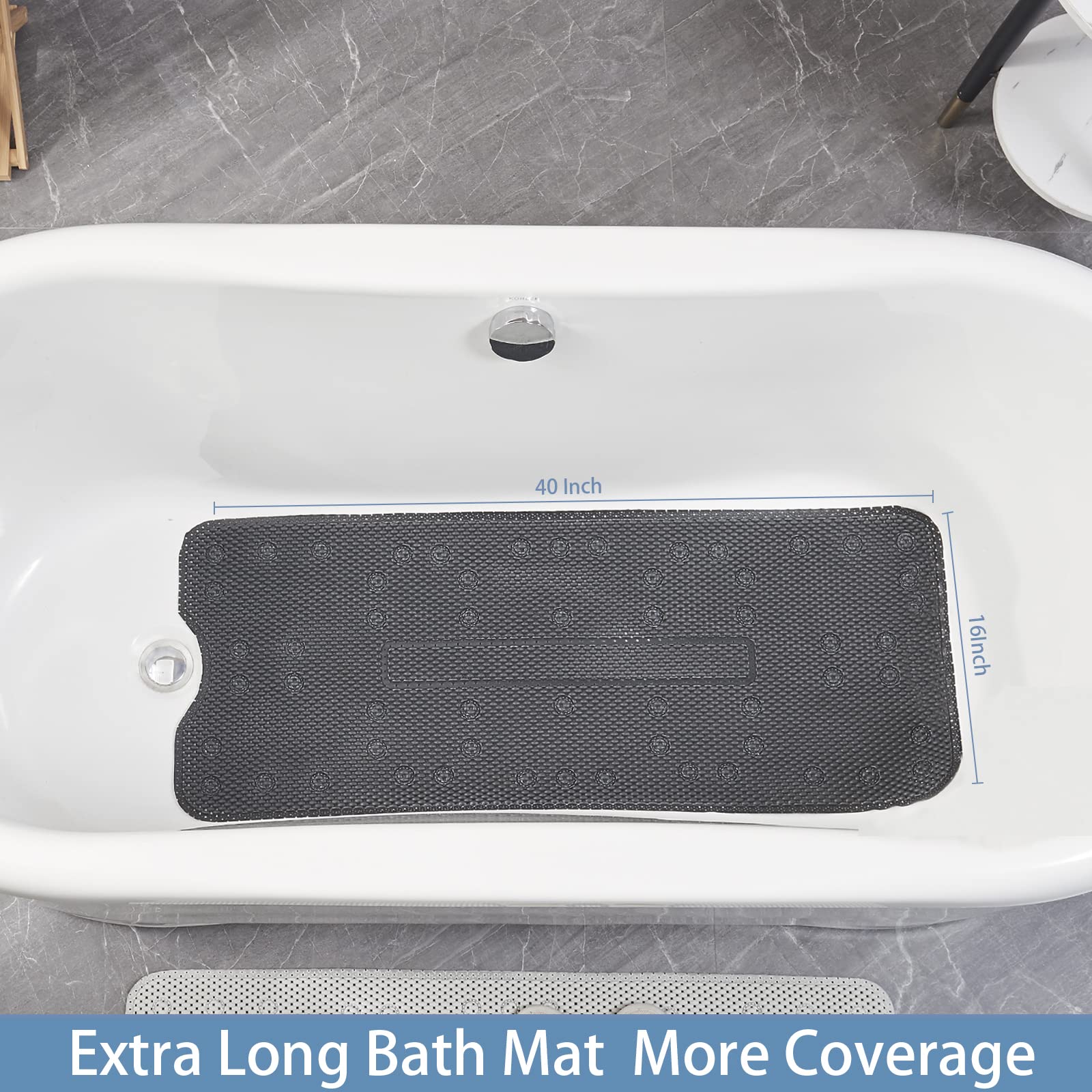 Oversized bath mat: 40 x 16 inch, much longer than others, provides ample coverage in the tub, perfect for home, hotel and spa.