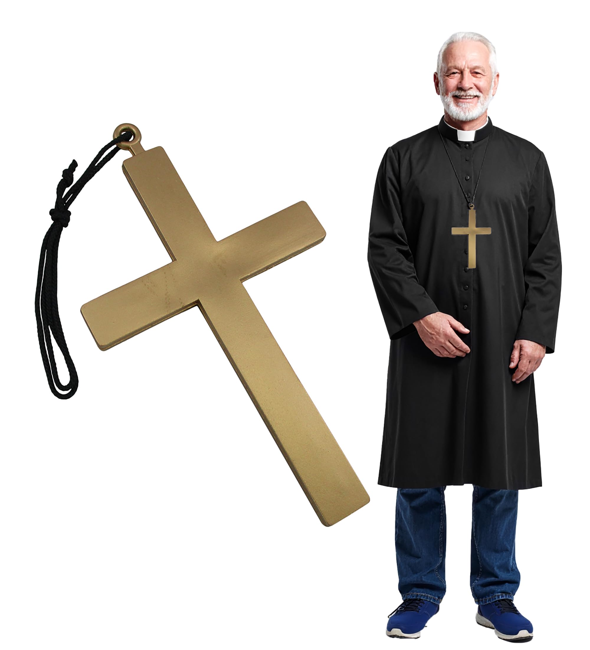 Lightweight & Comfortable – Made from durable hollow plastic, this 9-inch tall and 5-inch wide cross is easy to wear around the neck or attach to a belt for all-day comfort.