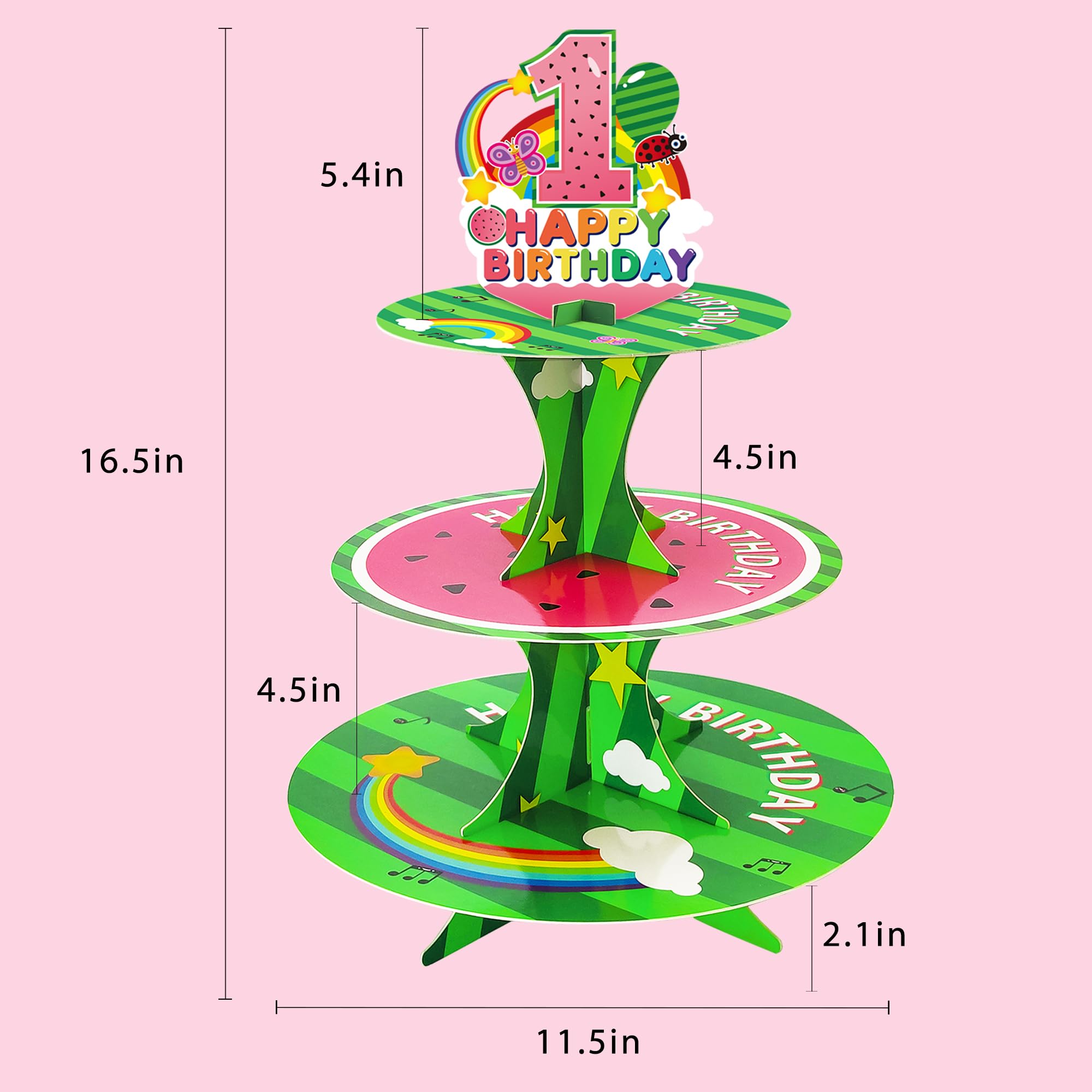 Cartoon melon Birthday Party Supplies 1st birthday, Birthday Cake Decoration, Watermelon Party Supplies. Watermelon party supplies 1st birthday. They are perfect for your kids 1st Birthday Party. Packing: 1 3-layer cake stand, which can hold 24 cupcakes. Material: High quality glitter card stock. Occasion: These melon birthday party supplies are suitable for children’s birthday parties, first birthdays, baby showers, birthday parties, garden parties, Cartoon melon birthdays. They can decorate your birthday cakes, cupcakes, dessert buffets or wherever you want! The perfect choice for melon party supplies. Note: The cake stand cannot be put into the oven and is not edible.
