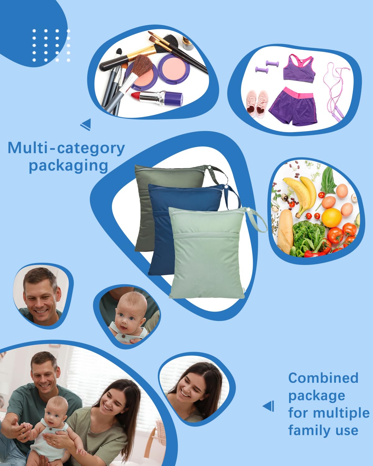 Multi-Function: You will receive 3 pack wet bags, which size is They are perfect for preserving cloth diapers and other baby products, and they can also be used as swimsuit bags, bikini bags, bathing suit bags, travel bags, gym bags, storage bags, cosmetic bags, handbags, wash bags, organizer bags, breast pump parts bags, even as picnic bags. They are ideal for baby shower gift, get yours today!