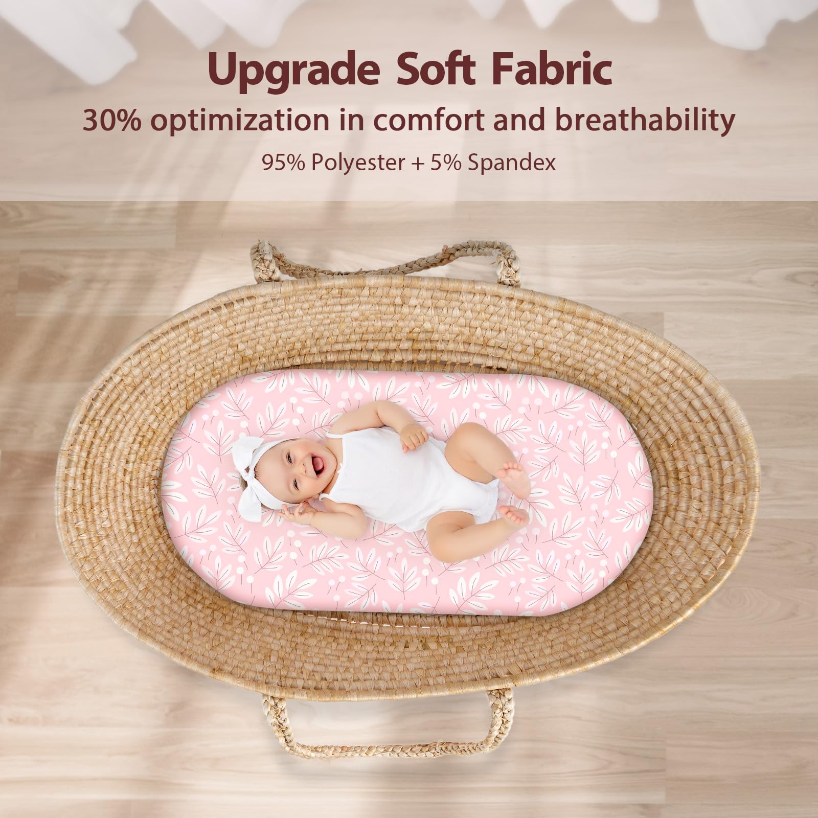 Easy-care & Durable: Crafted with pre-shrinking technology, bassinet mattress sheets are machine-washable with no shrinkage, fading, or pilling. Bassinet mattress sheets are durable for daily use and the first choice for moms.