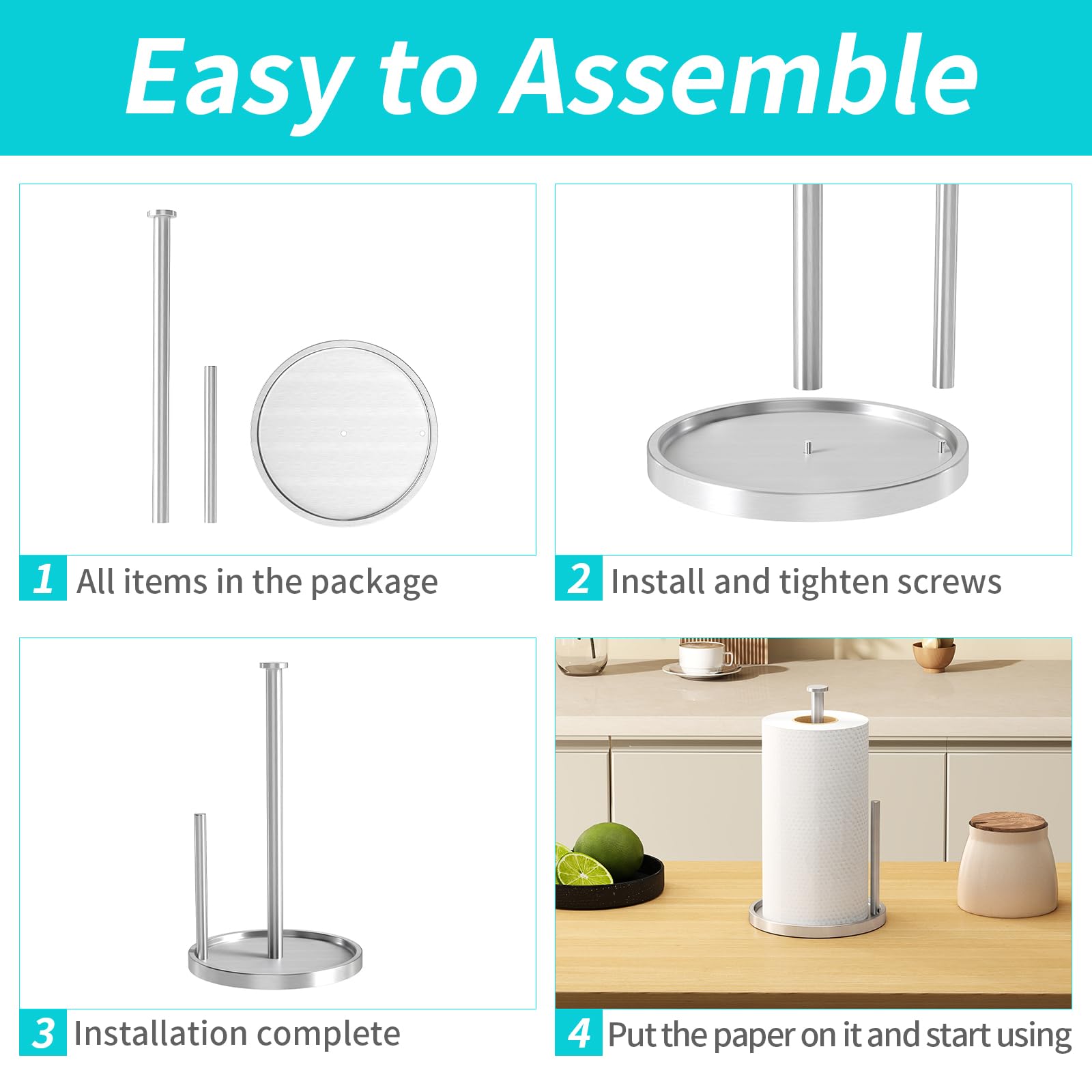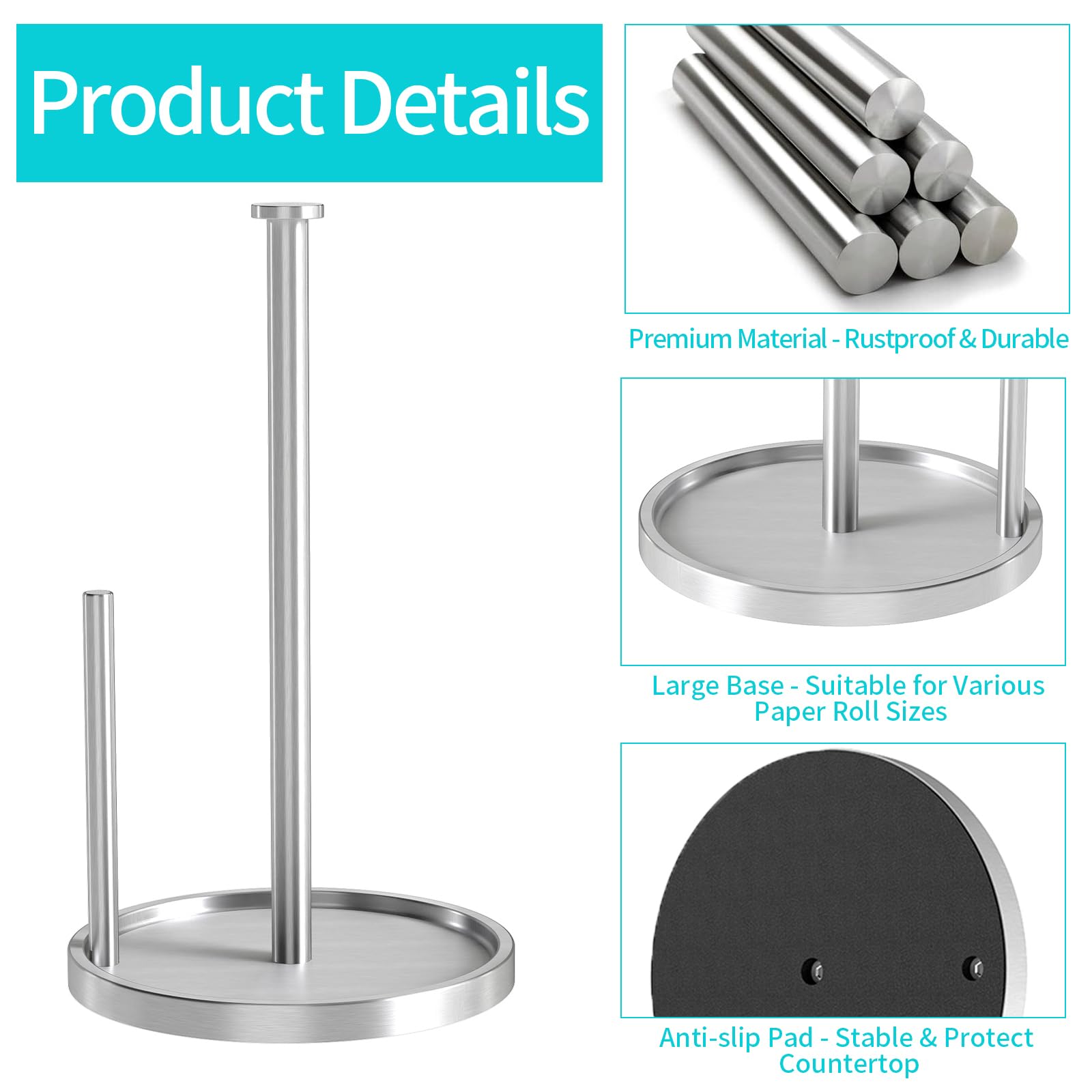 [Stylish and Sturdy] This paper towel holder for kitchen is made of high-quality metal material, and the surface is rust-proof and waterproof, which is durable. The simple and modern style highlighted by the silver color is suitable for matching any decoration, saving space and adding fashion style