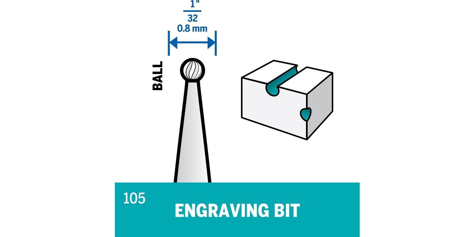 A high-speed cutter designed for precision engraving, 3/32inch (2,4mm) shank. Ideal for detail engraving, carving and routing in wood, fiberglass, ceramics, plastic, jewelry and soft metals. Dremel 1/32inch High-Speed Engraving Cutter, 3/32inch Shank Ideal for detail engraving, carving and routing in wood, fiberglass, ceramics, plastic, jewelry and soft metals. For best results, insert the accessory bit all the way into the tool and then back it out slightly before tightening down. This provides plenty of shank for the collet or chuck to hold onto the bit.