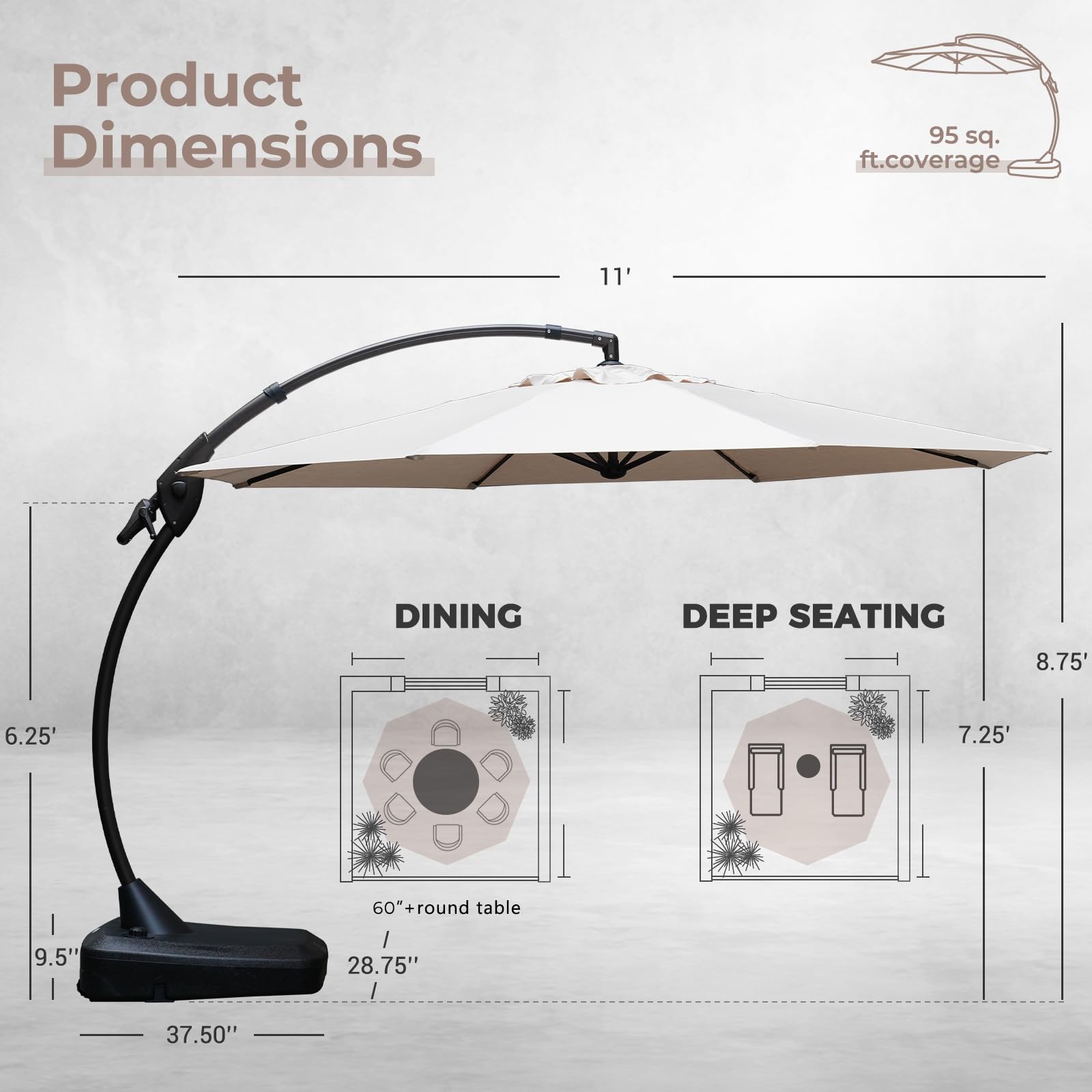 COVER A LARGE AREA: This cantilever umbrella provides 95 square feet of relaxing cooling shade. Stay in the shade with our clever auto-lock system that allows you to reposition the tilt of the umbrella where needed as the sun moves throughout the day