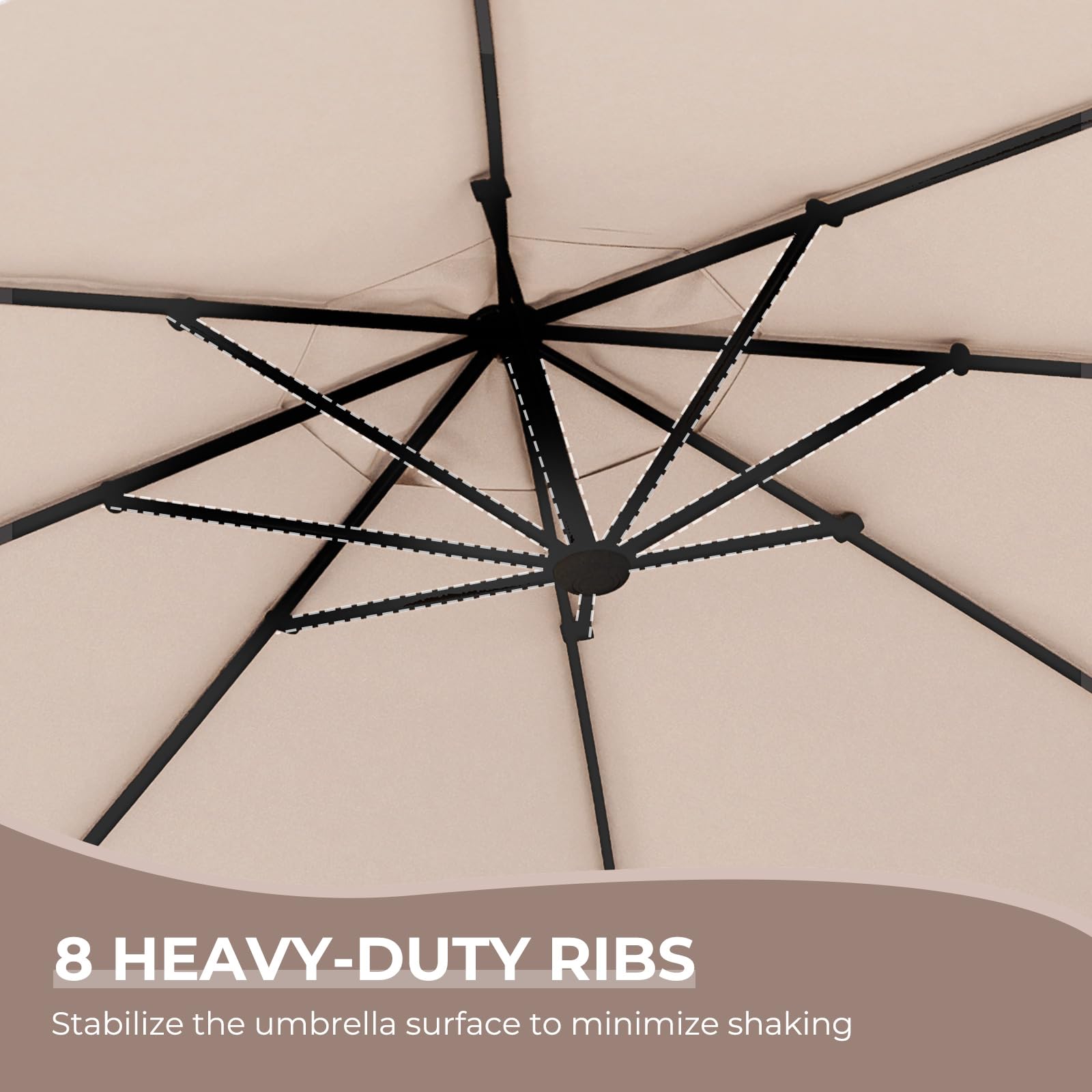 STURDY STEEL RIBS: Enjoy unparalleled stability with our premium offset umbrella, boasting 8 heavy-duty ribs that ensure exceptional stability even in windy conditions