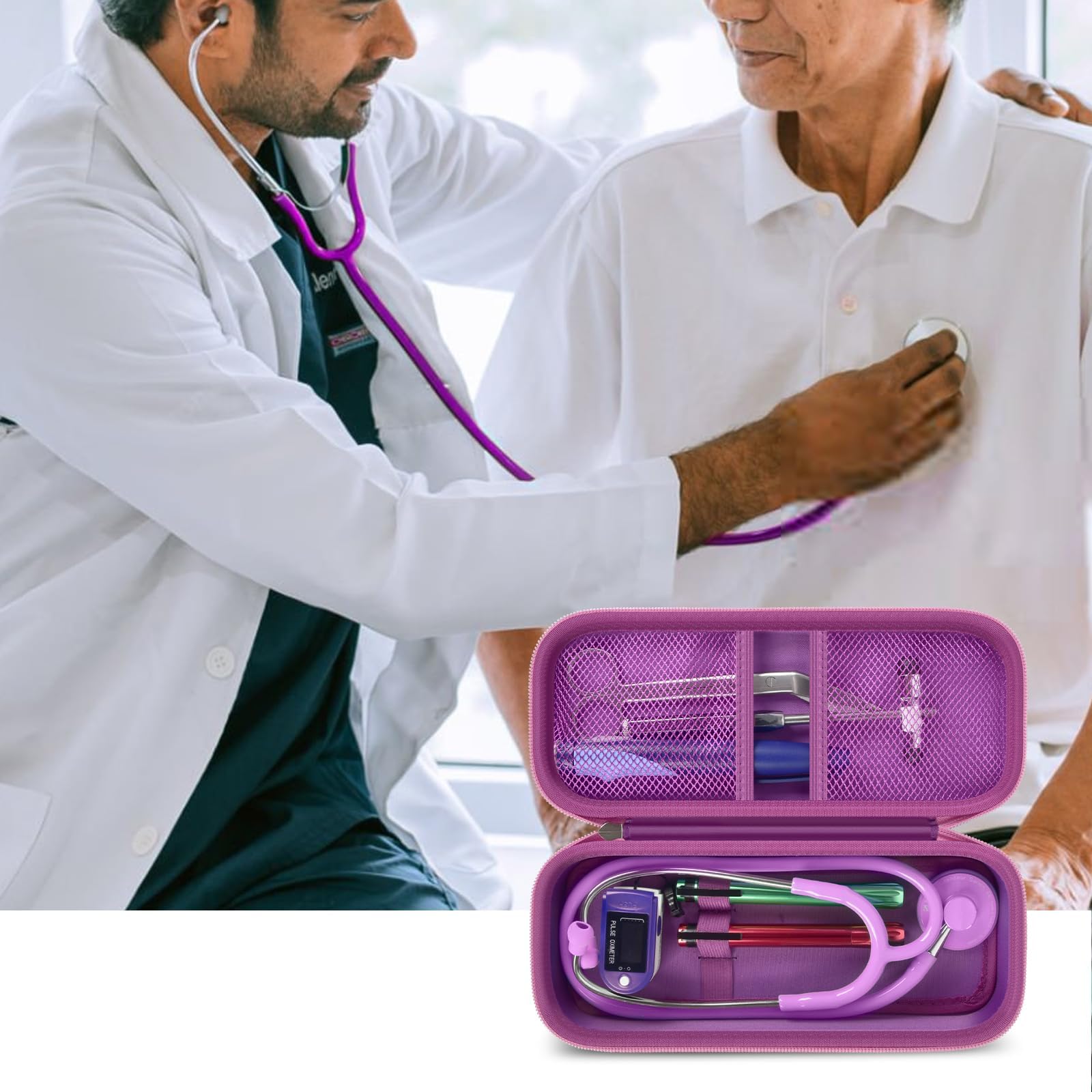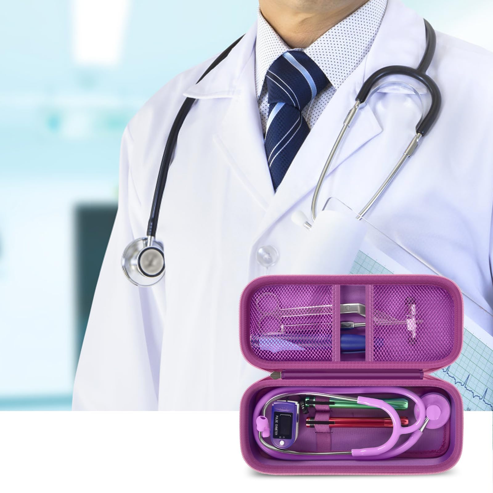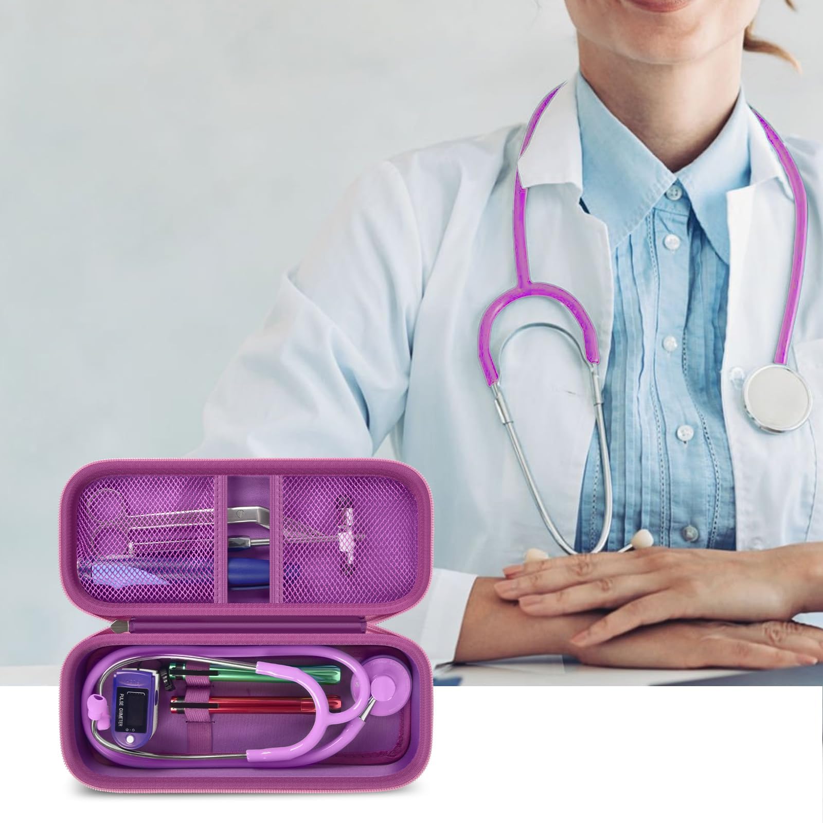 Stethoscope Case of Comprehensive Protection: This case is made of the hard EVA materials, the anti-static, shockproof layer and fluffy fabric inner layer fully padded and effectively absorb impacts, compact fully protect the stethoscope, neurological reflex hammer, medical thermometer, pulse oximeters, and other Littman stethoscope accessories. Prevent shaking and loss; avoid stethoscope breaking.
