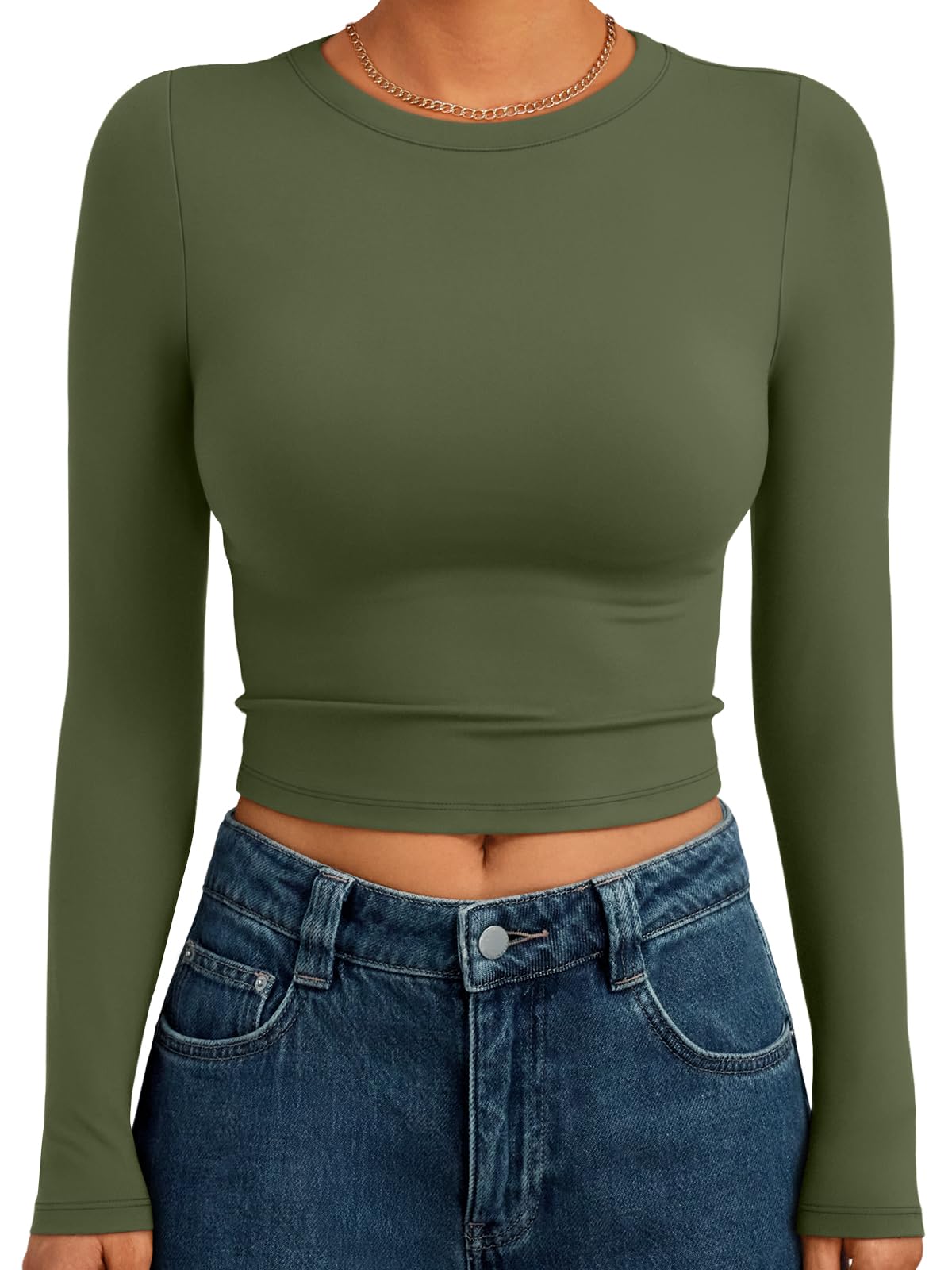 Y2k Design: Cropped and regular style,you can wear it regularly or fold it up like a crop top.cute,slim fitted,casual style,scoop neck,long sleeve shirts.