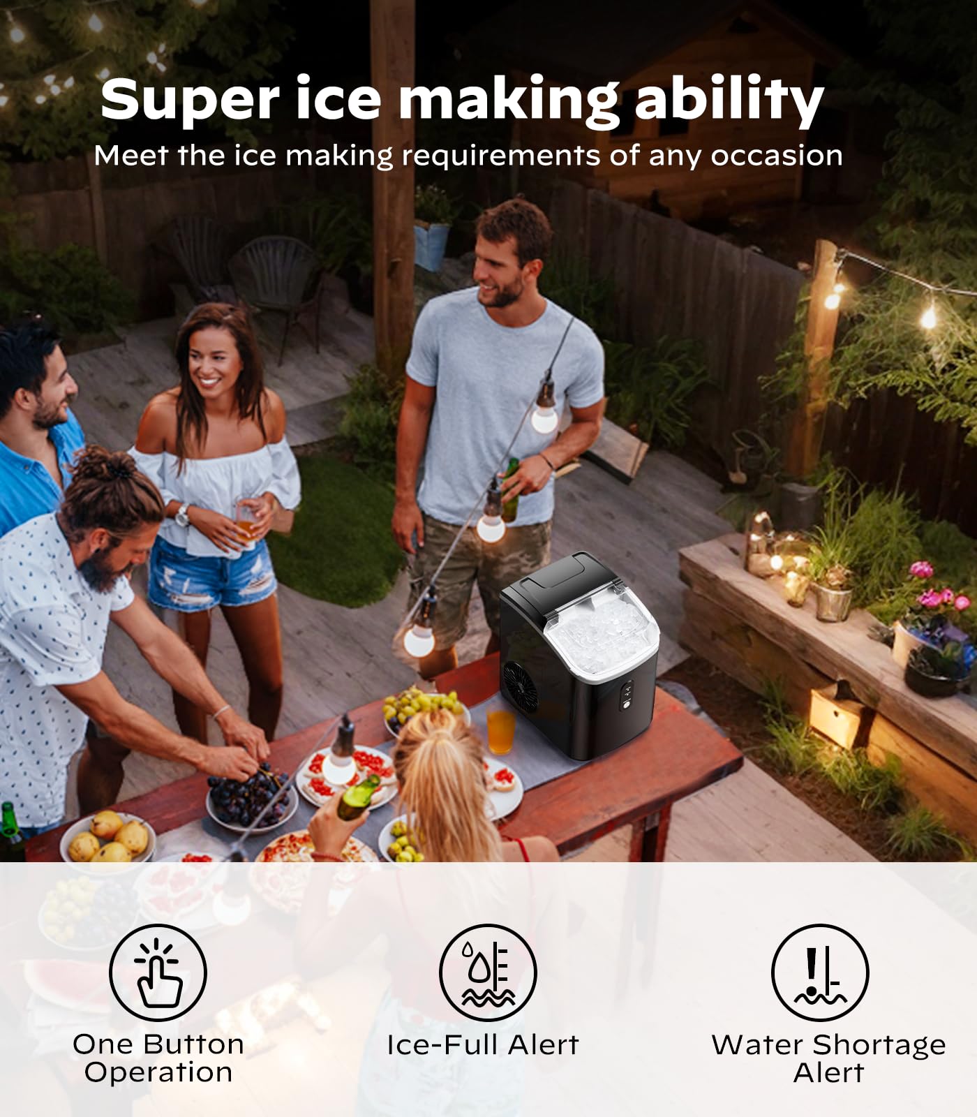 Compact and Portable Design: Measuring just 11.3″ W x 8.66″ D x 12.68″ H, our nugget ice maker is compact enough to fit seamlessly on your countertop. Perfect for home, office, or parties, you can easily take ice maker anywhere to enjoy refreshing frozen treats with friends and family