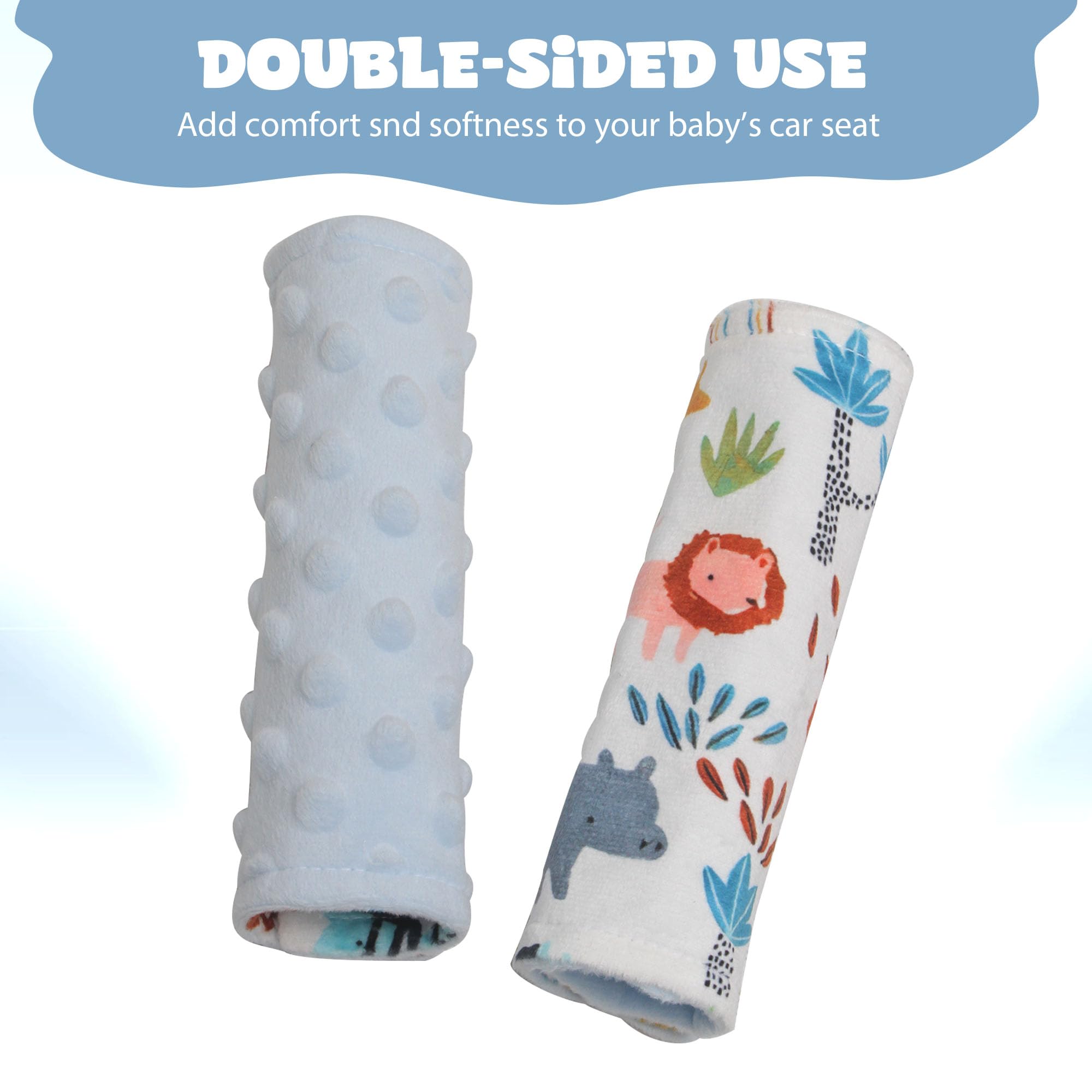 Soft and Cushiony: - Super soft on both sides of the car seat strap covers. Soft, pretty velvet on one side and minky dots on the other side! Added comfort snd softness to the car seat. No more red cut marks from seat belts!