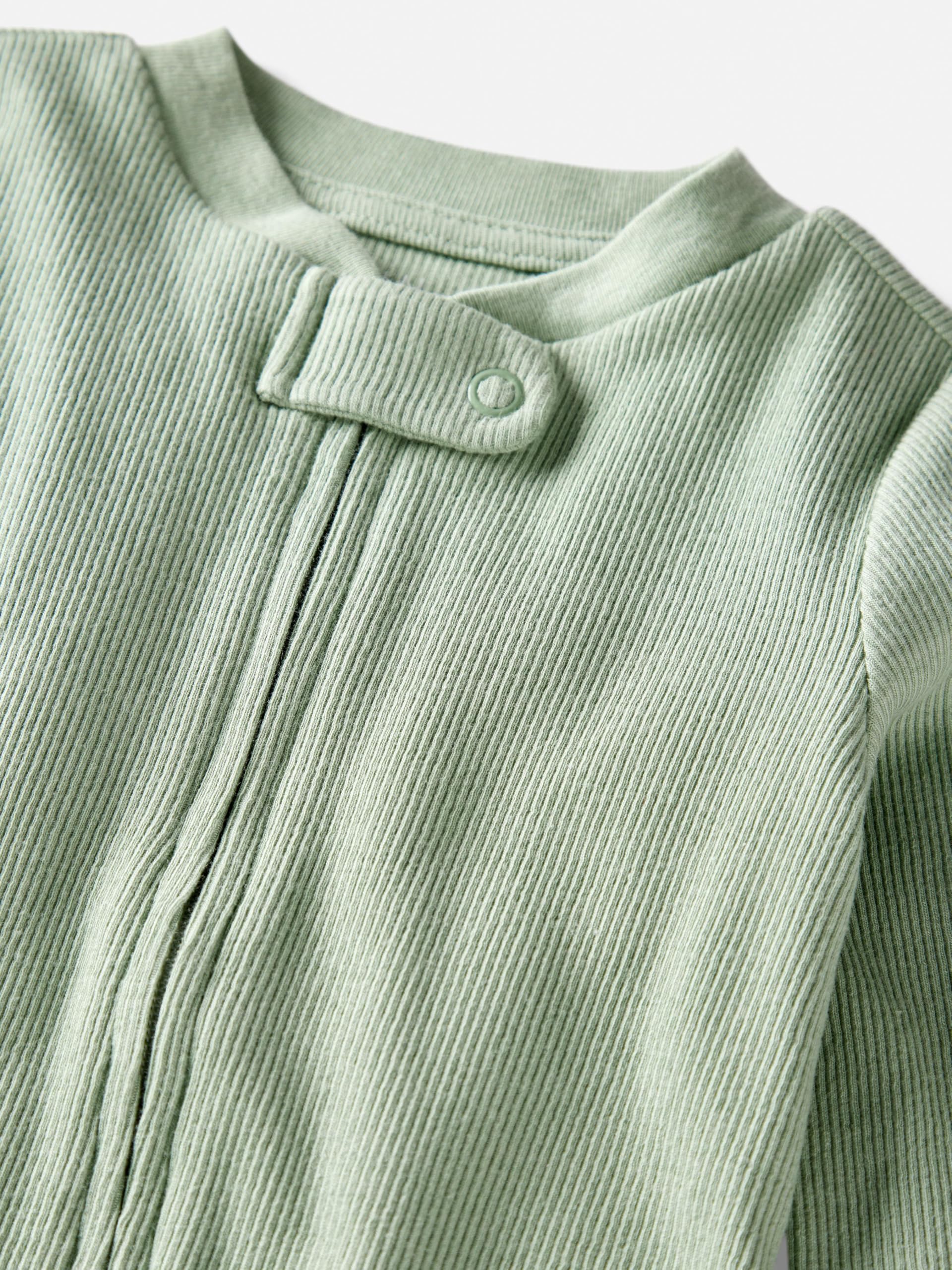 Description Cuddle baby up in this soft, certified organic cotton sleep & play. Made for daily adventures in tummy time, nap time and beyond, this piece is blooming with thoughtful details like a 2-way zipper to keep baby's arms & torso warm during diaper changes, plus built-in footies to keep tiny toes cozy. In our exclusive print, this one piece is wildly cute!
