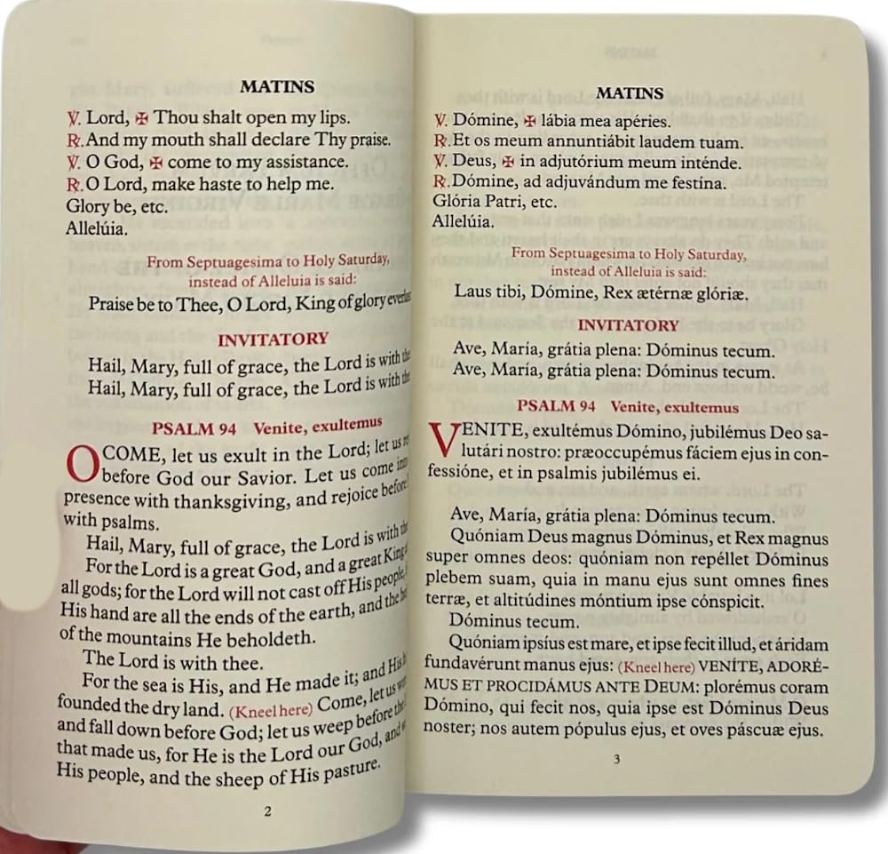 The best prayer is the prayer of the Church. Here it is–simpler than the Breviary, but essentially the same. Pray the inspired psalms of the Holy Ghost. Around since the 8th century. Hated by heretics, loved by friends of Our Lady. Recited by Saints John Damascene, Catherine of Siena, Vincent Ferrer, Louis of France, Bridget of Sweden, and many more. The text of the Little Office of the Blessed Virgin Mary and the Office of the Dead is that of the 1915 Benziger Brothers edition with updated punctuation and slight rewording of some familiar passages in English. The content of the Offices was revised in conformity with the norms of the typical edition of the Roman Breviary published in 1961. Completely re-typset with the Latin and English text on facing pages. Angelus Press offers this beautiful edition to the faithful as an eminently readable and truly affordable format. Printed in red and black text. Gold foil stamped, black,flexible softcover with rounded corners.