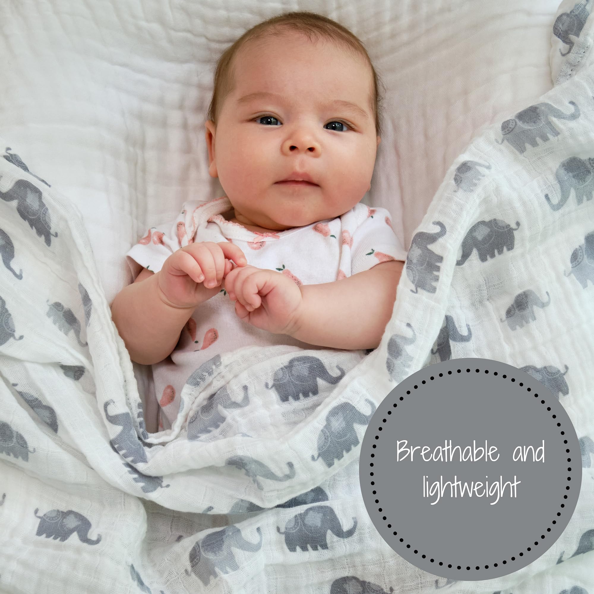 SOFT AND COZY BLANKET - Wrap your baby in our extra soft 100% cotton muslin swaddle blanket to make your baby feel safe and secure. Each 47x47 blanket provides enough space to snuggly and securely wrap your newborn.