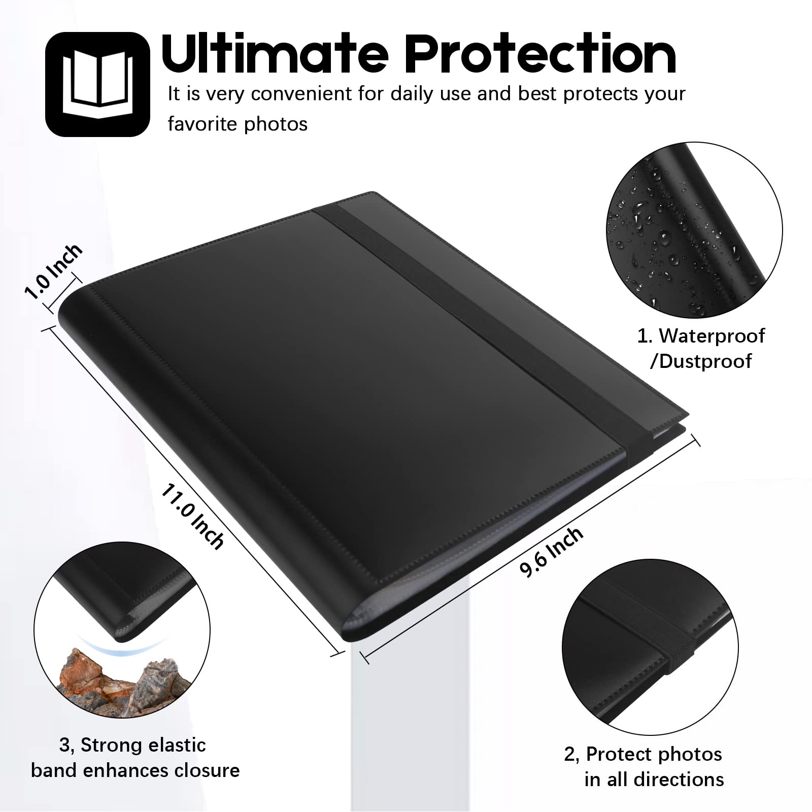 Ultimate Protection Your Favorite Photos - Our 8x10 photo album cover is very strong and not easy to tear, constructed of sturdy poly plastic. Side loading pocket design to prevent cards from easily falling out. Elastic strap holds the album shut when not in use. Protect your favorite 8x10 pictures