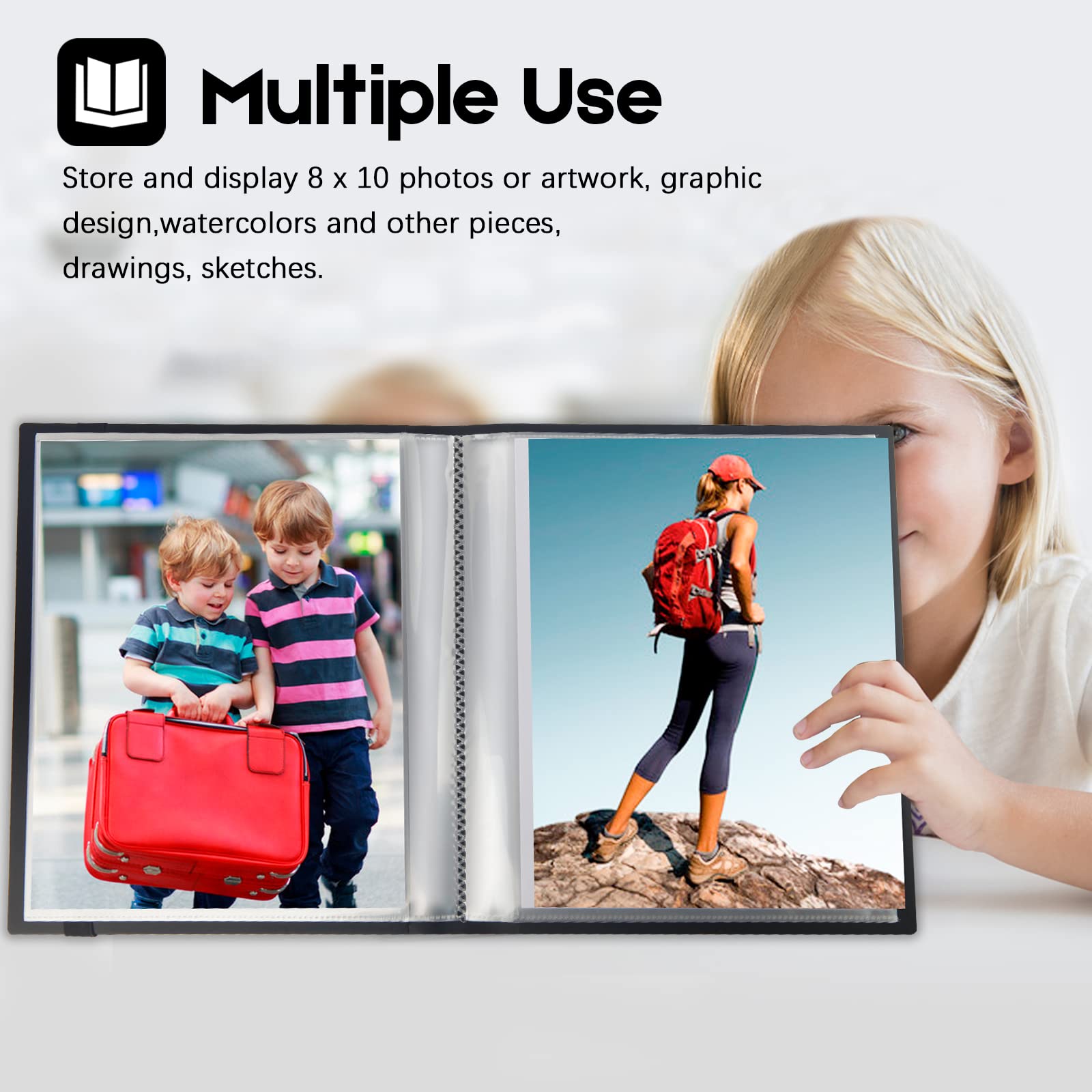 Includes & Portable - Folder for 8x10 artwork. Art Presentation Book is perfect for artist, students, teachers, kids art portfolio, business owners. Each display pocket is 8.3 x 10.4", to comfortably fit 8x10 inch photos, artwork, or other items