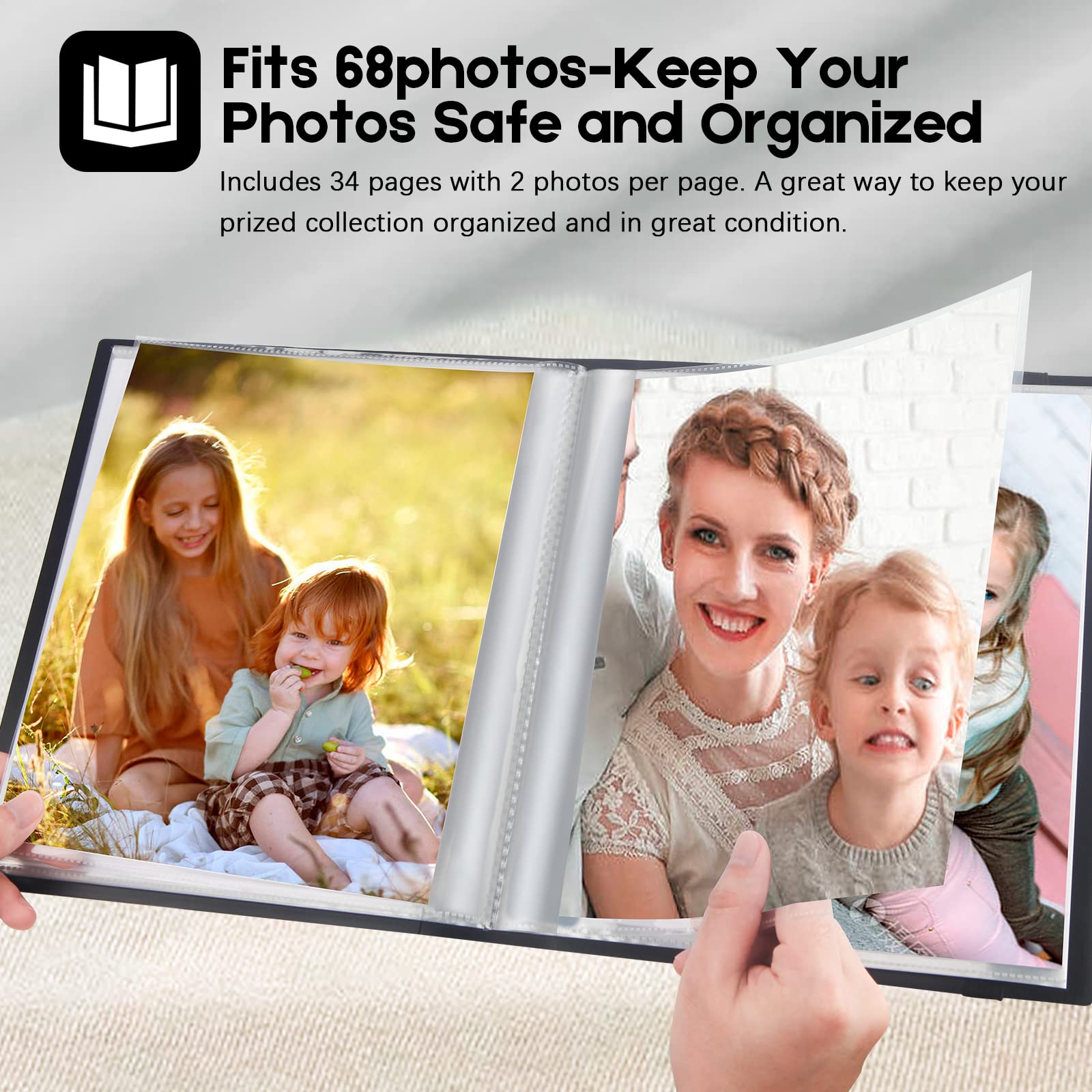 Store 68 Photos - Each 34 - page 8 x 10 photo album can display 68 pictures, opens like a book for easy viewing. A great way to keep your prized collection organized and in great condition