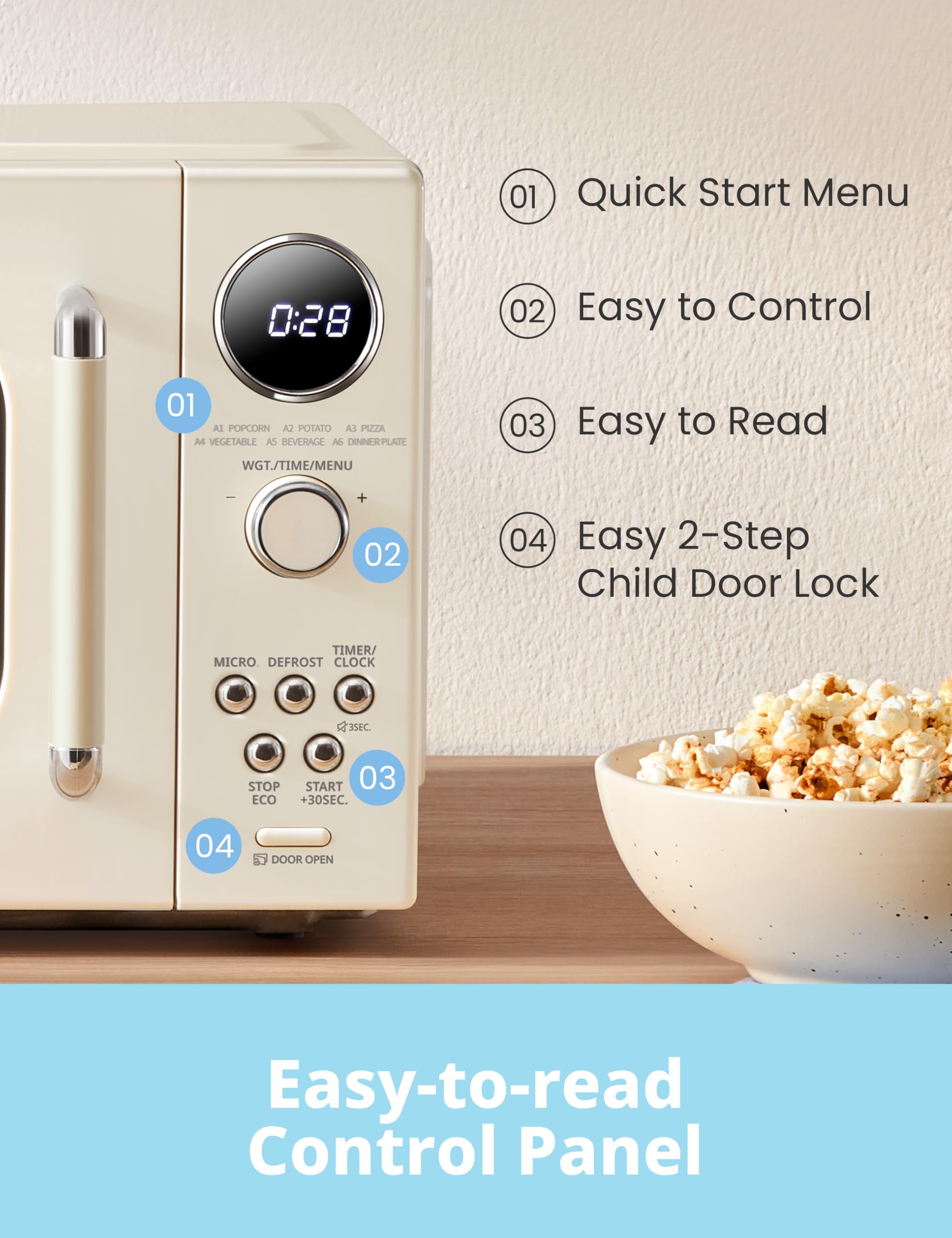 Stylish Retro Design: With compact size, this retro microwave fits all types of kitchen styles, also adds to the colour of your home. Easy-to-read control panel with LED display is suitable for all of you to use. Perfect gift for the one you love.