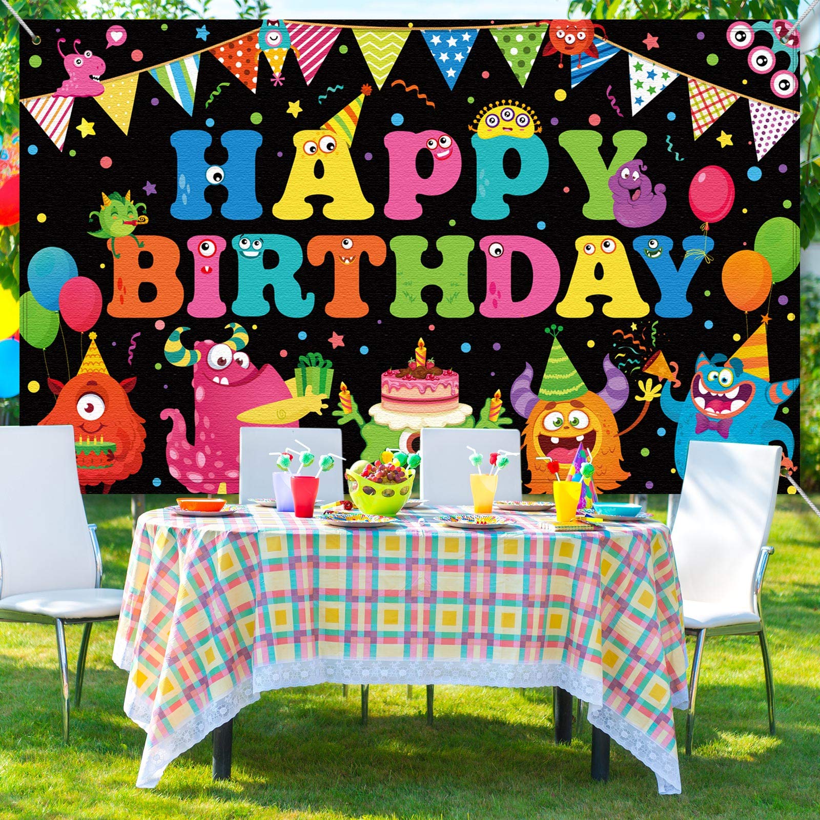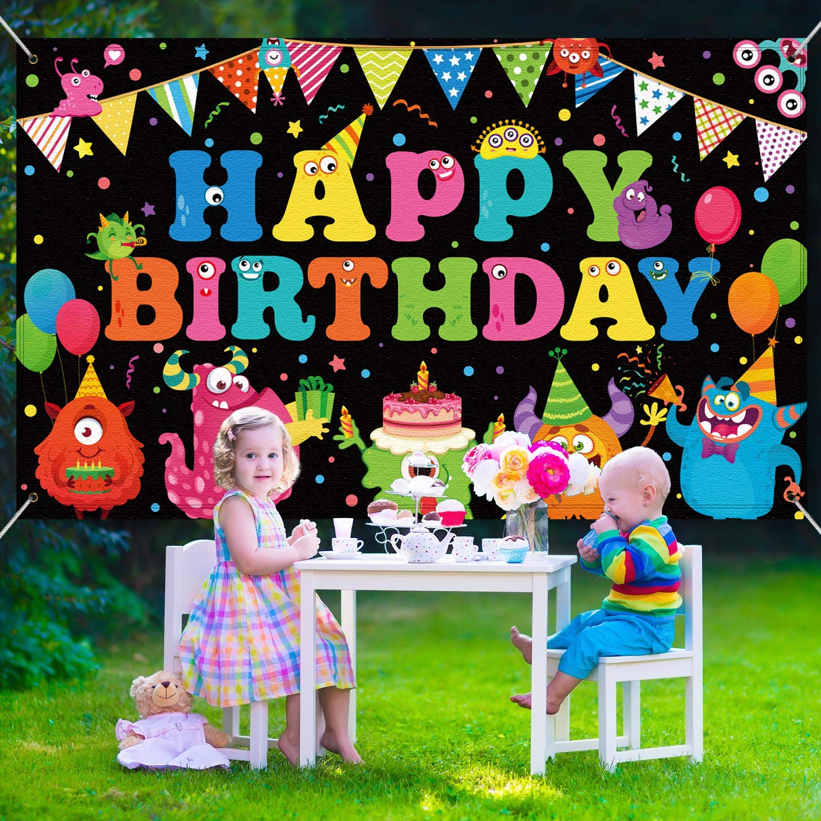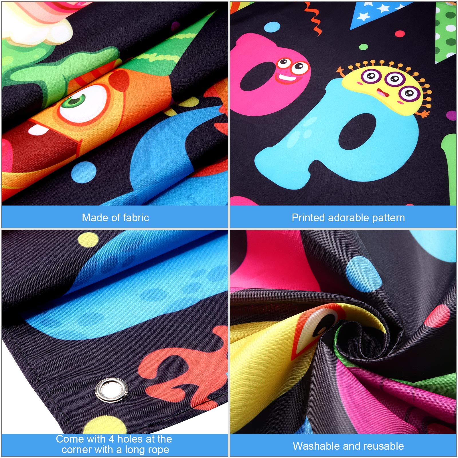 birthday backdrop: the photography background is printed with different monsters on the surface, suitable for kids' birthday party, baby shower party, and can be the talk of the party as our beautiful background pops out as the centerpiece of all your themed decorations