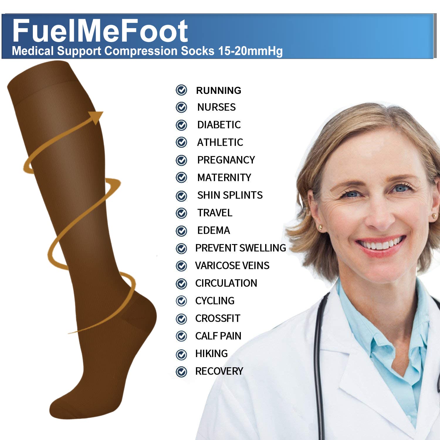 ✅KNEE HIGH MILD COMPRESSION - Provide mild squeezing for warmness and enhance blood moving through your legs. Remove stress and stimulate every cell, relieves symptoms varicose veins and excess fluid retention. Help relieve pain & discomfort related to plantar fasciitis, Provides true graduated compression to support your legs, reduce fatigue, soreness, cramping and prevent injuries at the same time.