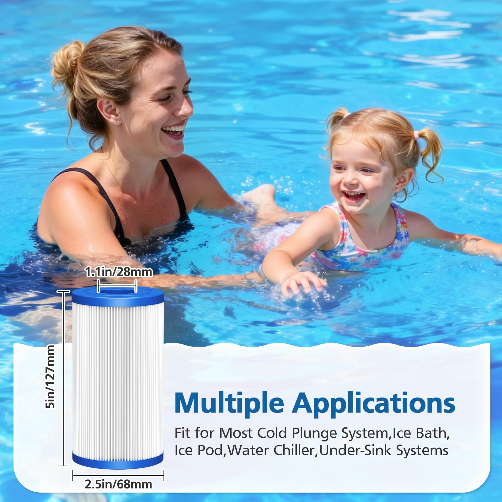 【Superior Flow & High Dust Capacity】5" x 2.5" Ice Bath Water Filter Cartridge Featuring More Pores and a unique structural design, this filter cartridge ensures greater water flow with significantly reduced risk of blockage, maintaining optimal filtration efficiency for your pool or cold plunge system. Brings softer and cleaner water for your health.