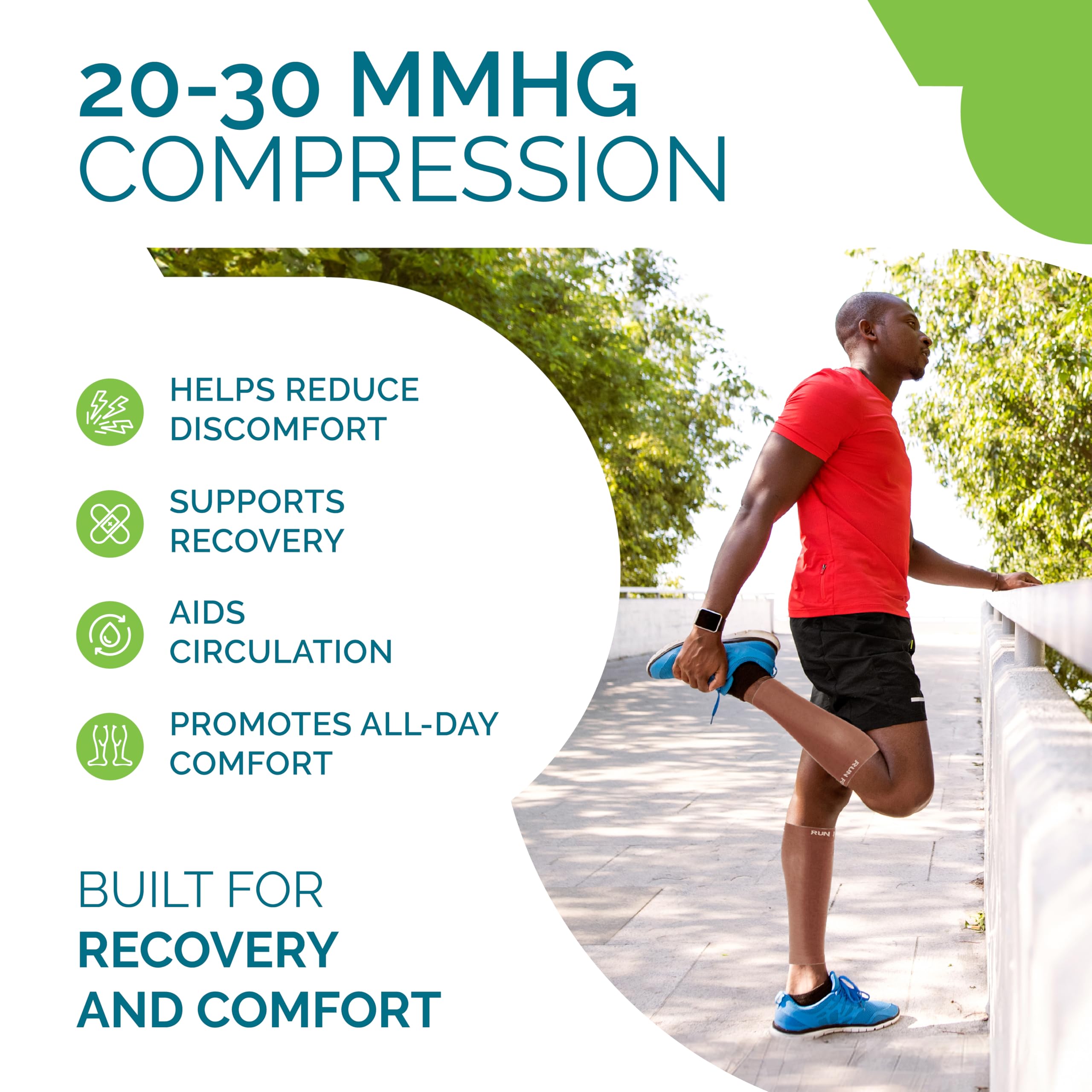 Professional medical compression stockings: The leg wraps have true graduated compression strength of 20-30 mmhg, improving performance while alleviating leg pain, swelling and allowing for faster injury recovery