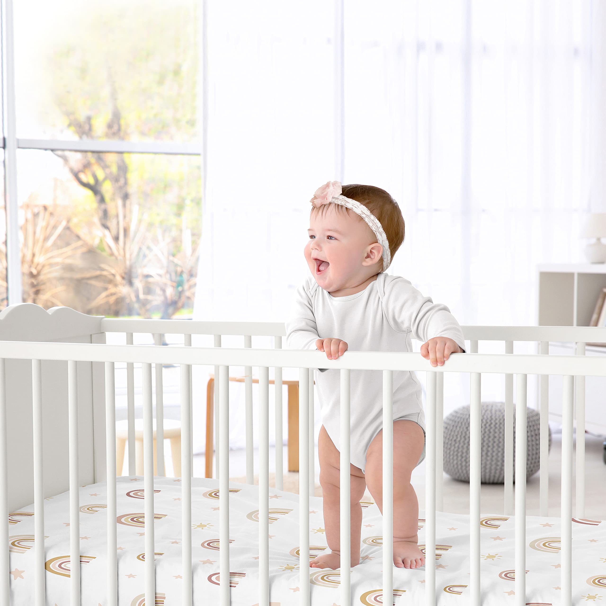 Fully elastic bottom that securely fits on most standard size cribs and toddler beds