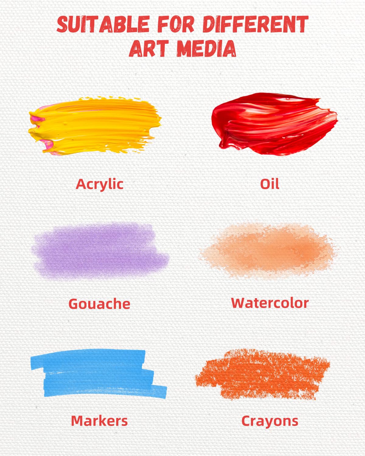 【Higher Tinting Strength】Simetufy 11x14 canvases for painting have nice surface texture and holds the paint without absorbing it, can maintain the paints natural tones and glossiness. Suitable for a variety of artist media from oil and watercolors to acrylic, pastel, tempera and gouache.