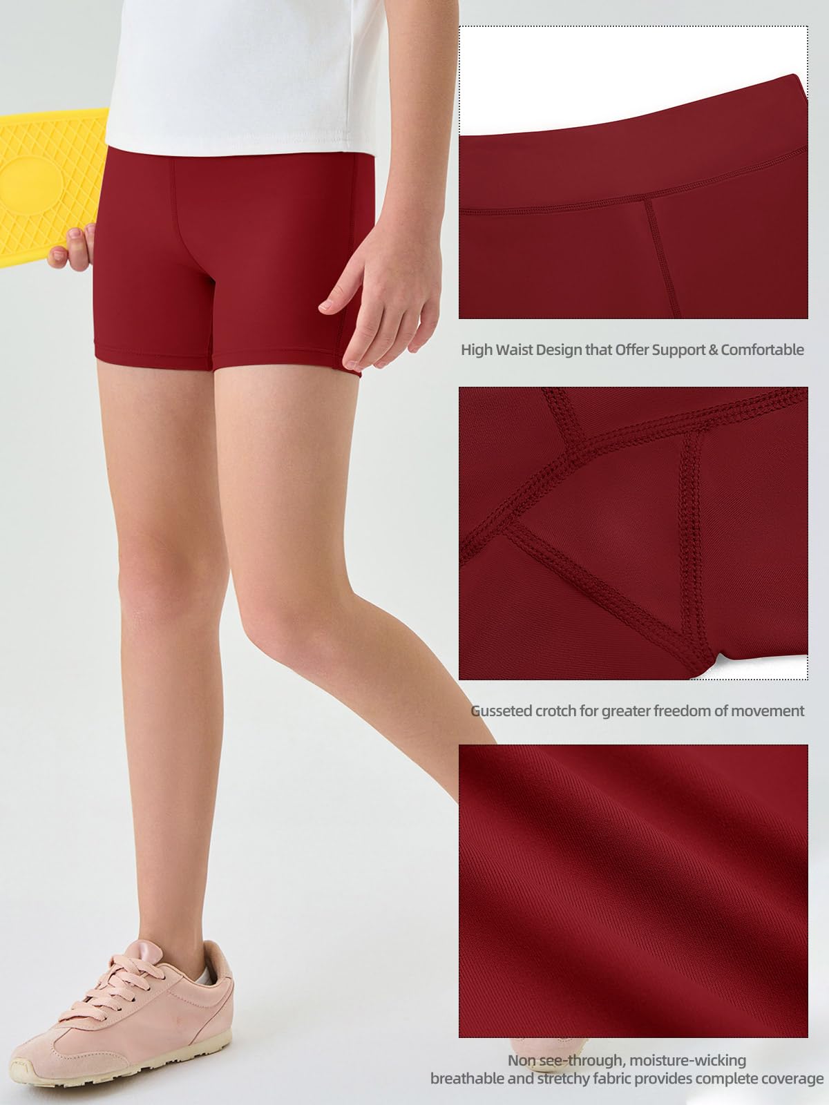 4-Way Stretch: The girls workout biker shorts featured 4-way stretch fabric which is durable and maximizes free movement during sports. The high density of knit fabric ensures durability and NON SEE THROUGH while squatting