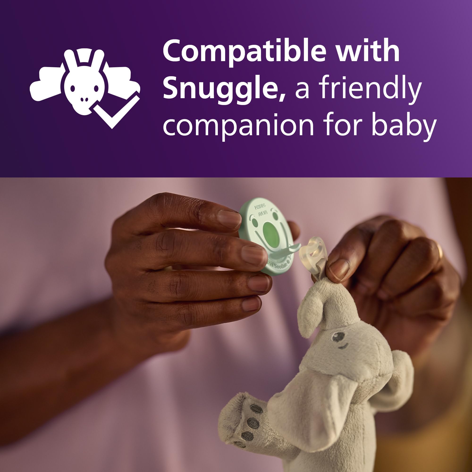 Baby pacifier that's compatible with Snuggle: Philips Avent Soothie can be attached to Snuggle, a plush toy that helps babies find, hold and love their Soothies