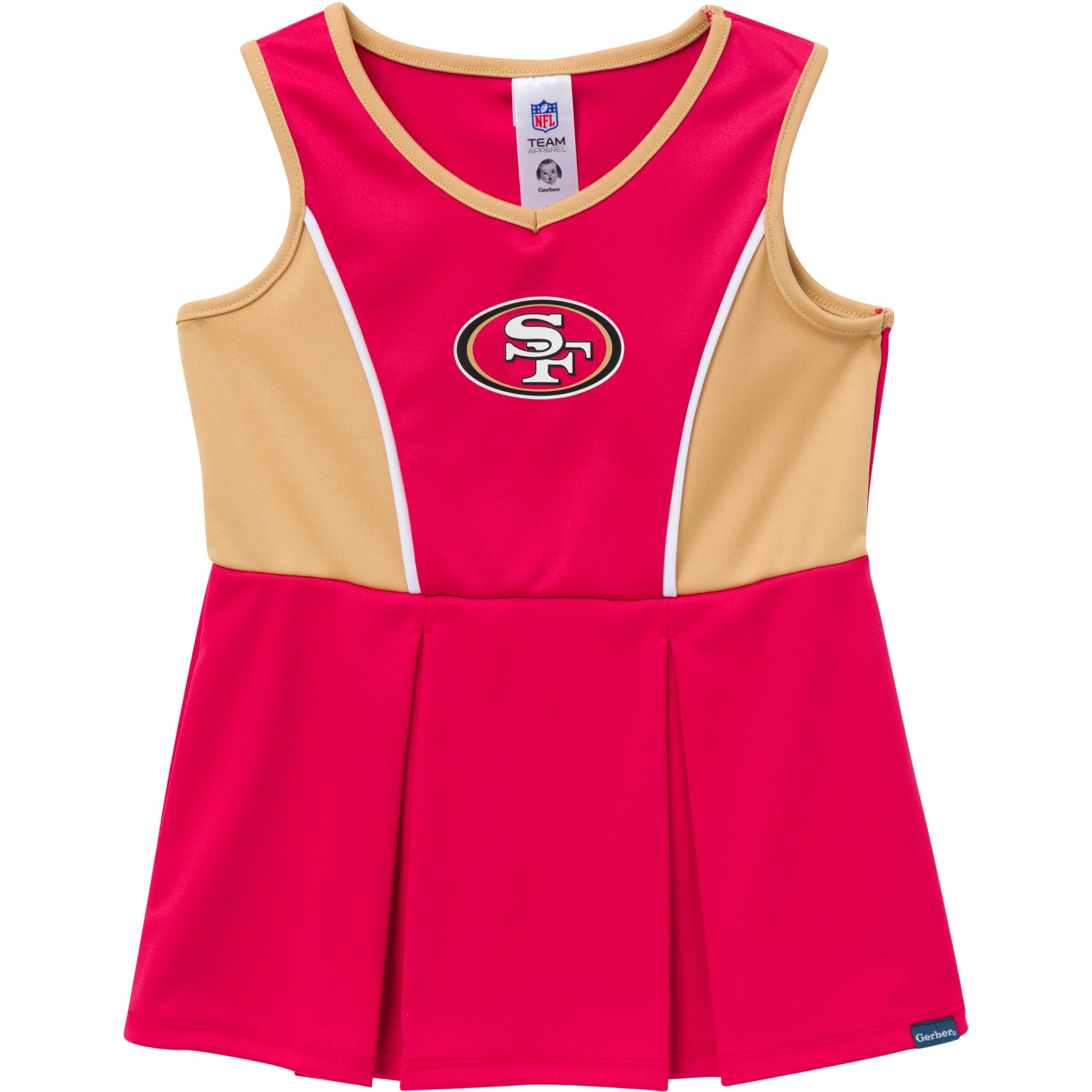 Description Let your little one cheer on the home team in style with this NFL baby girl cheer dress and diaper cover set. Designed with a classic cheer-inspired design, the pullover dress features rear snaps for quick changes and is made from durable, stretchy interlock fabric that moves with her through every wiggle and wave. A matching diaper cover with a soft, comfort-stretch waistband and leg openings ensures a secure yet flexible fit. The bold team logo at the center of the dress adds an official touch of game day spirit, making this a fun and sporty outfit for watching the game, attending a tailgate, or celebrating a win at home. A spirited choice for football-loving families, this NFL baby girl outfit also makes a great baby shower or first-game gift.