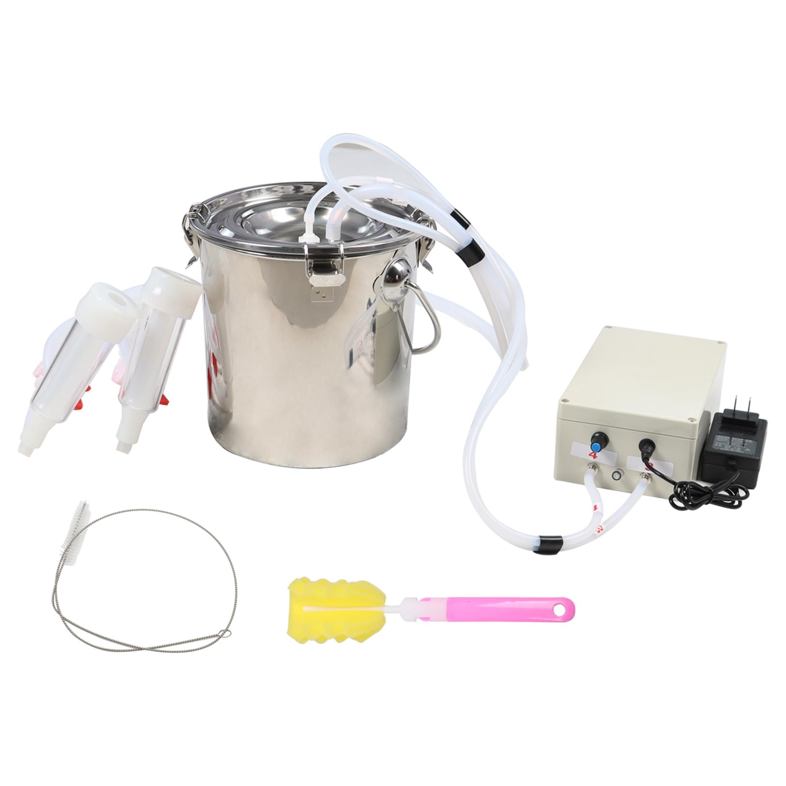 Capacity: 3L Bucket Material: 403 Stainless stain Input Voltage: 110V-220V Package Includes: 1x Stainless bucket, 3L 1x Vacuum pump 1x US plug 2x Cleaning brush 2x Teat cups and milk hoses 1x User guide