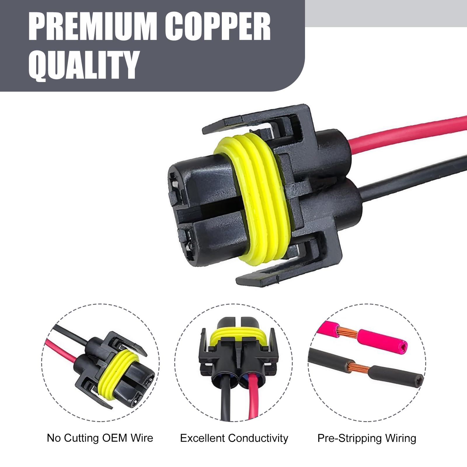 Package Contents: Includes 2 H11 connectors (for left/right fog lights or multiple vehicles). Copper wiring ensures strong current flow, fixing poor contact/power outages for bright, functional lights.