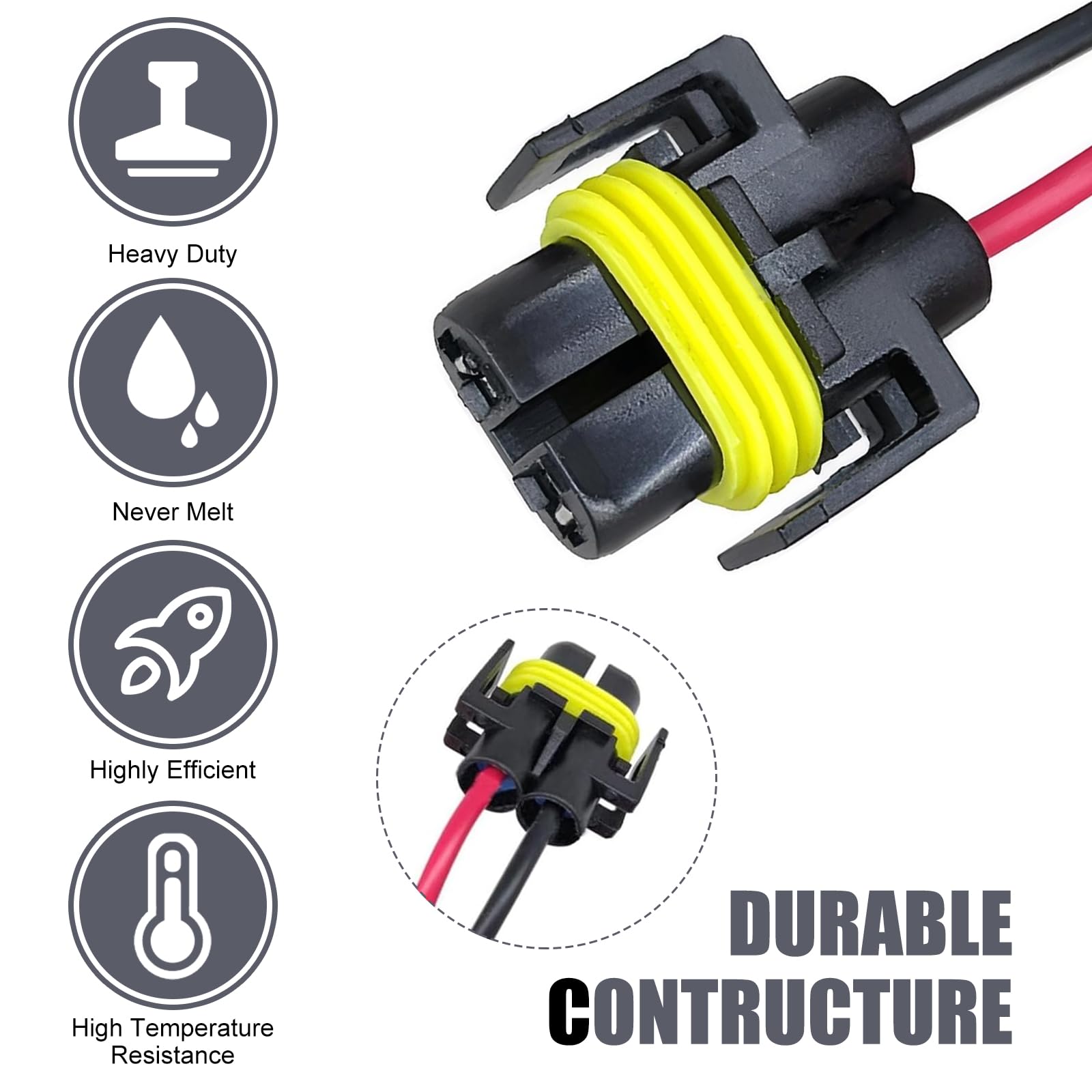 Waterproof Design: This fog light connector kit has waterproof H11 leads. Integrated rubber gaskets and silicone seals isolate internal wiring from moisture.