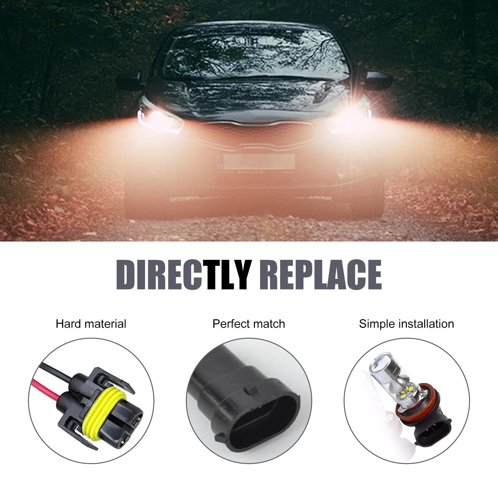 Universal Compatibility: The set works with H11 bulbs (fog lights, high/low beams) and adapts to most 12V-24V systems, left/right lights for most cars—no compatibility guesswork for replacements/retrofits.