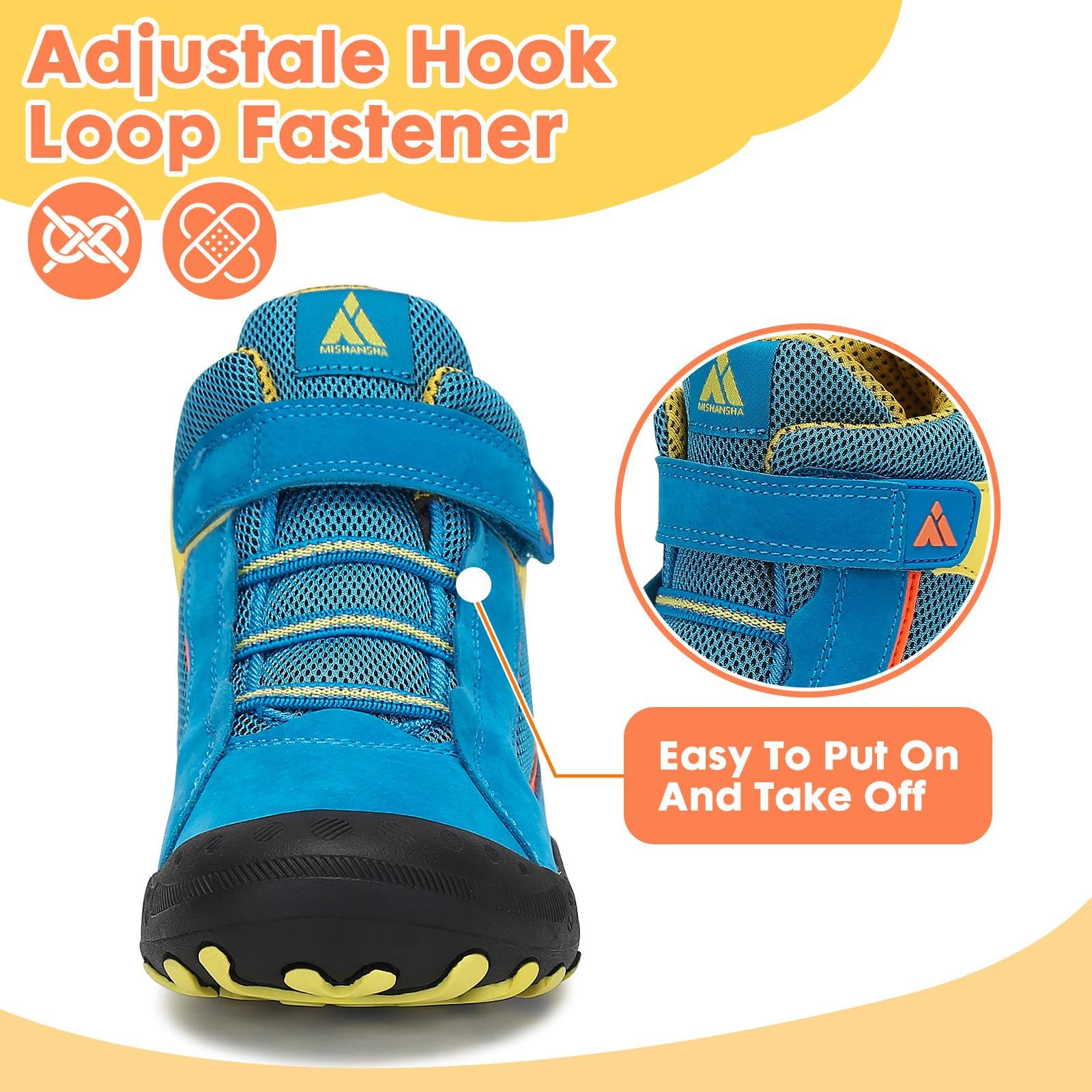 EASY ON AND OFF: Girls boys hiking shoes are designed with hook-and-loop strap and elastic adjustable buckle provides child a secure fit and easy to put on and take off.
